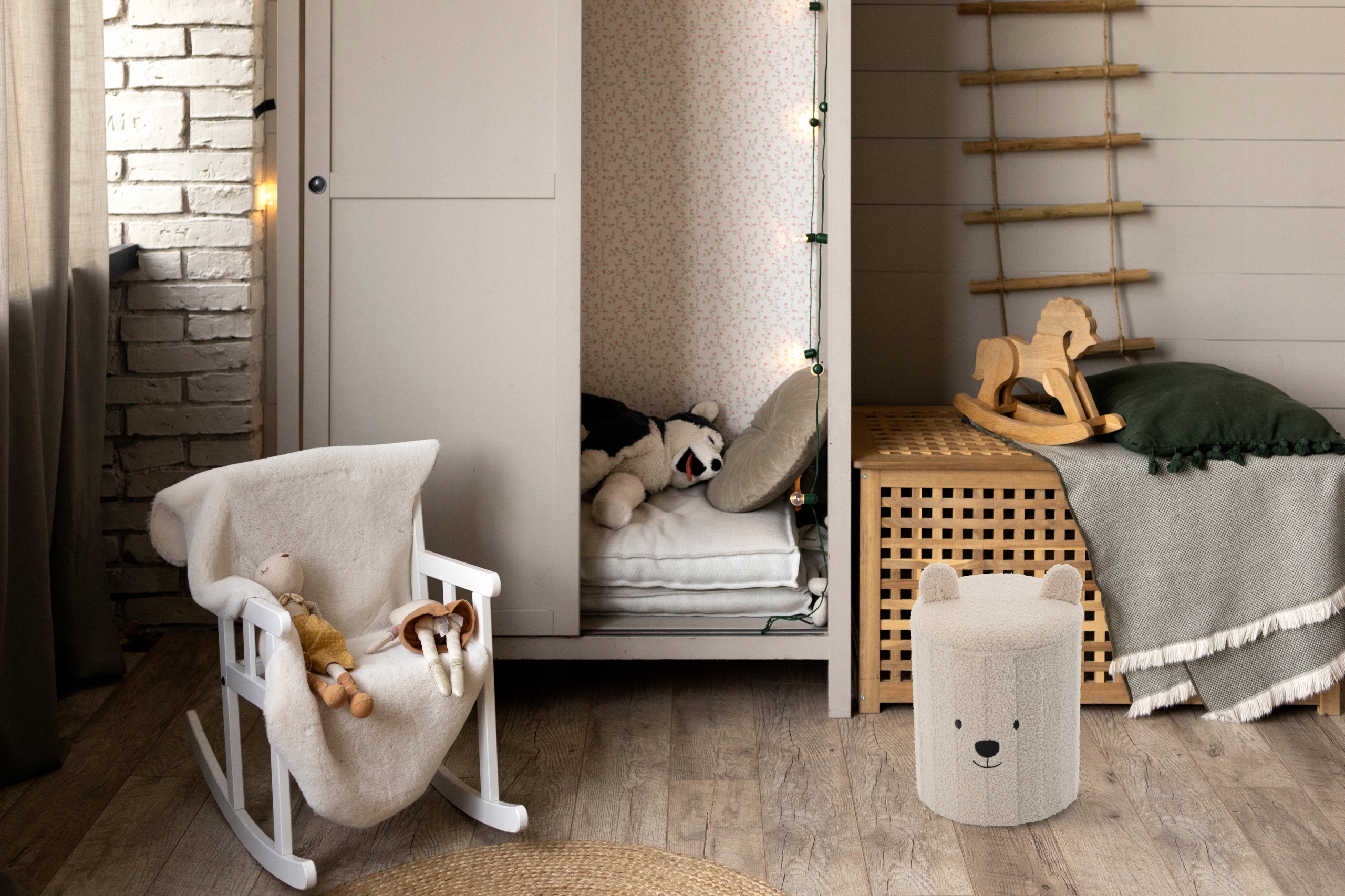Adauga un plus de ordine si farmec in camera celui mic cu acest taburet pentru copii pliabil cu spatiu de depozitare, realizat intr-o nuanta placuta de bej si cu un design adorabil de ursulet. Este alegerea potrivita pentru parintii care cauta un produs practic, compact si usor de integrat in decor. Poate fi folosit atat ca scaun pentru copii, cat si ca loc discret pentru depozitarea jucariilor, cartilor sau accesoriilor.