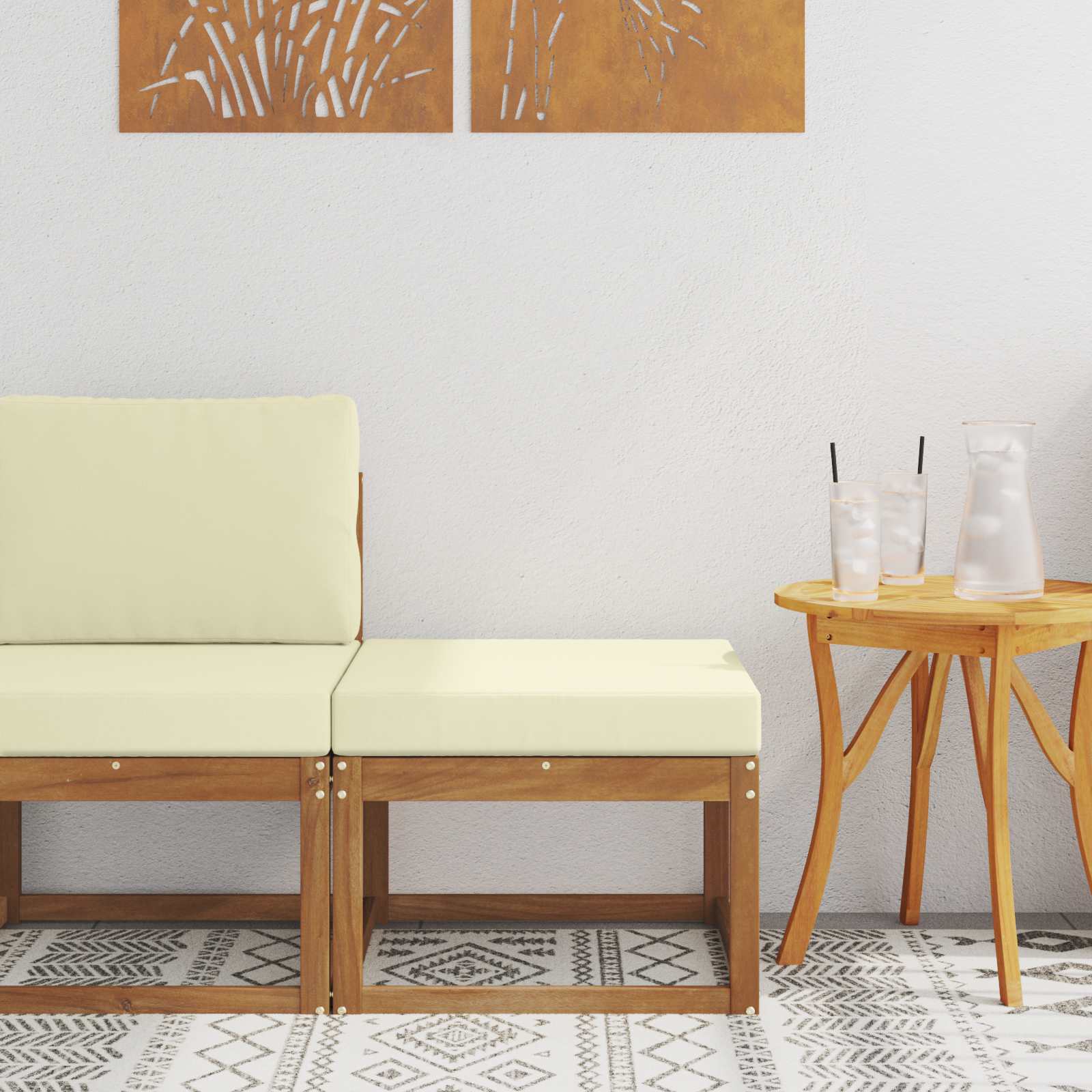 Mobilier pentru exterior cu un design curat și confort, perfect pentru aranjamente modulare. E din lemn masiv de acacia, având un aspect natural și stabilitate pe care te poți baza. Ideal pentru terase, grădini sau locuri de relaxare în curte.