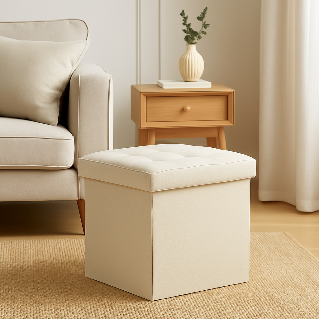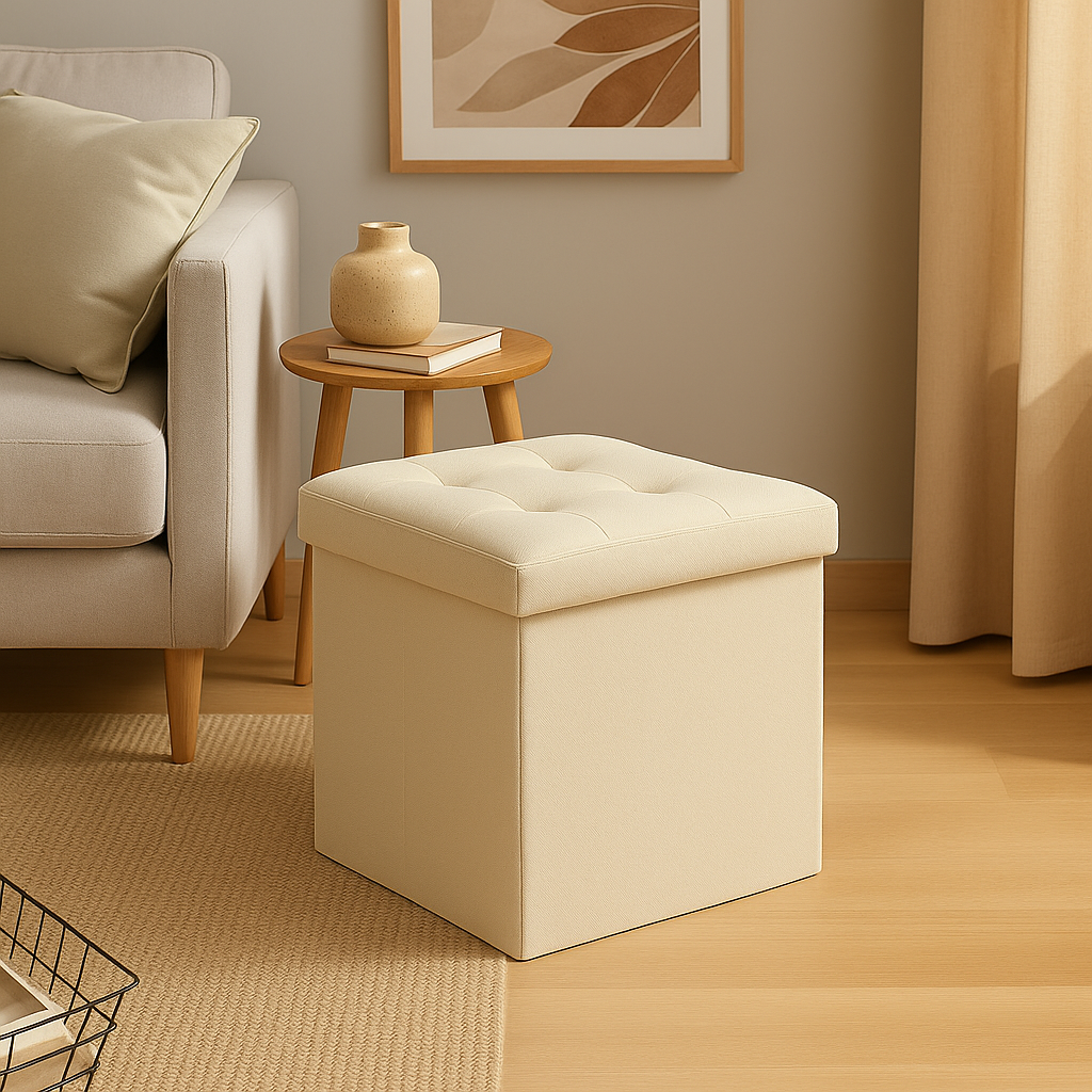 Taburet pliabil Atmosphera Lysandre cu spatiu de depozitare, 38x38x38 cm, bej Household NewTrend
