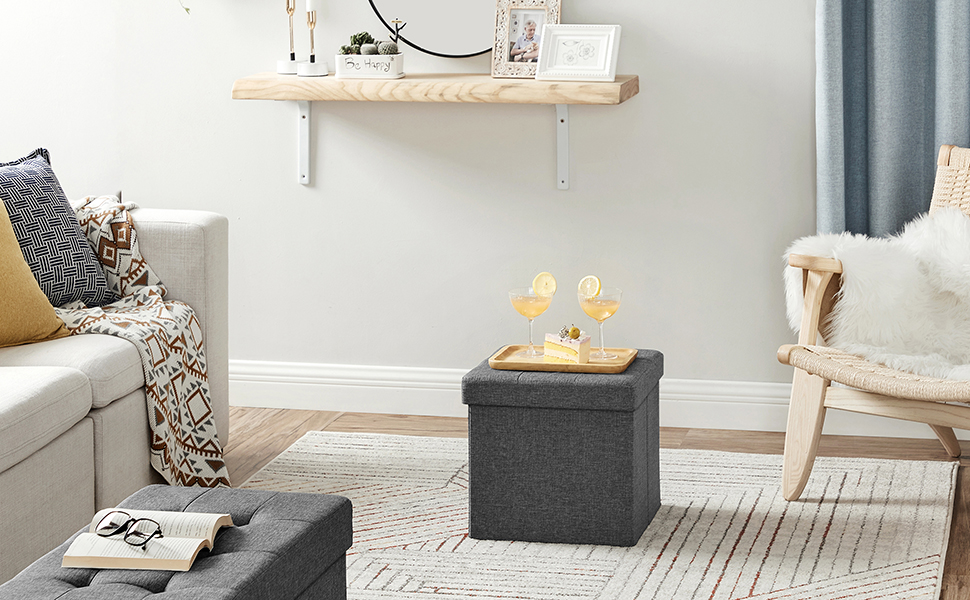 Alege un taburet pliabil cu spațiu de depozitare care îmbină perfect confortul, organizarea și designul modern. Acest model SONGMICS este ideal pentru living, dormitor, hol sau chiar lângă fereastră, oferind un loc comod de ședere și un compartiment generos pentru lucrurile pe care vrei să le ai la îndemână, dar ferite de priviri.