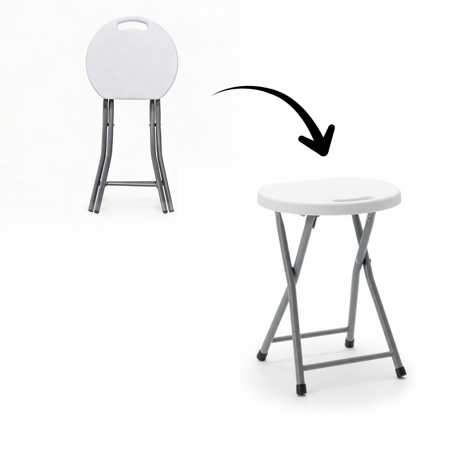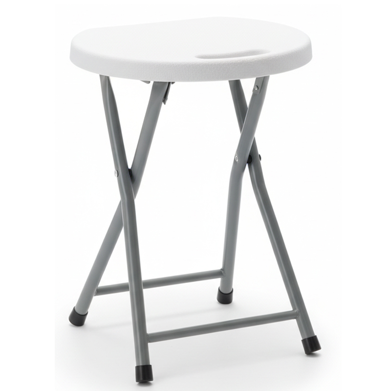 Taburet pliabil pentru camping sau gradina, cadru metalic si blat PVC, 32x44 cm, alb Household NewTrend