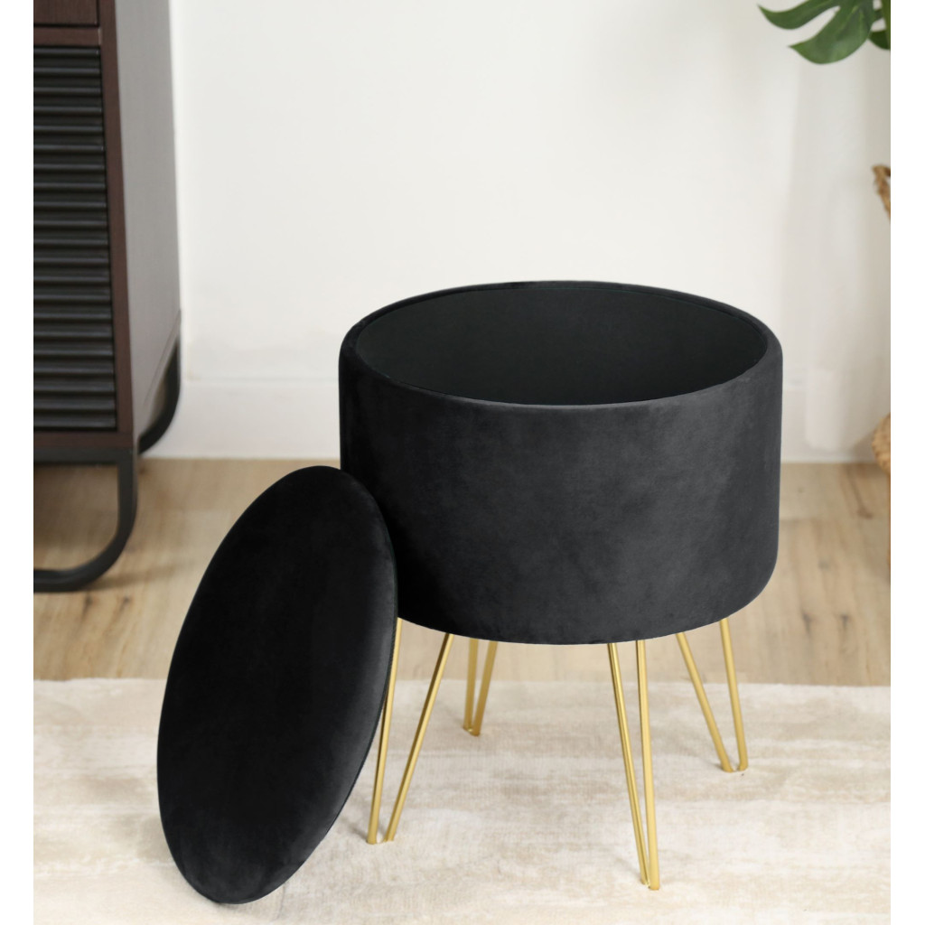 Taburet rotund Lili cu spatiu de depozitare, velur negru, 35x45 cm