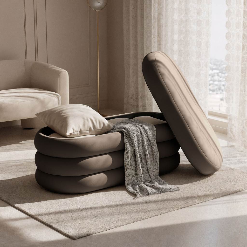 Descriere Taburet tapitat Puffo spatiu depozitare, velur,