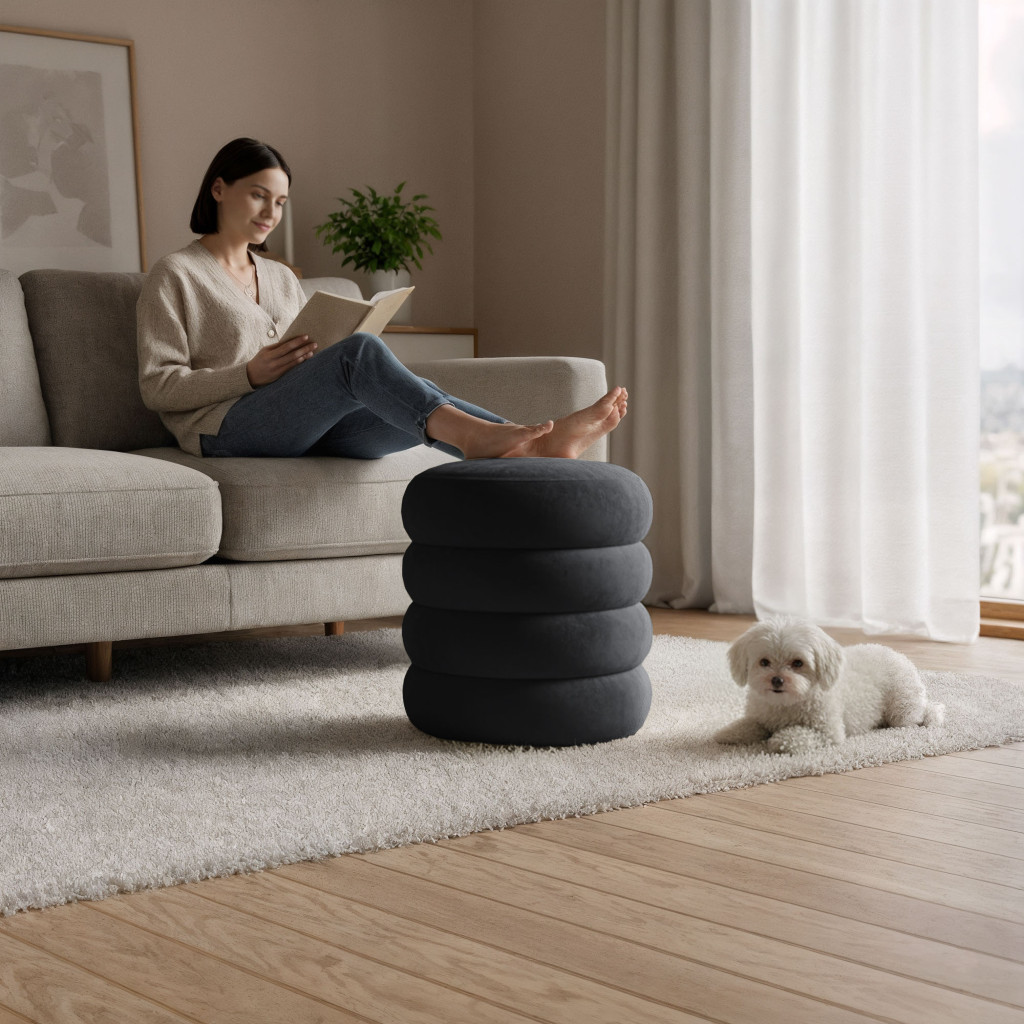 Taburet tapitat Snuggo cu spatiu de depozitare, velur, diametru 42 cm, inaltime 45 cm, negru Household NewTrend