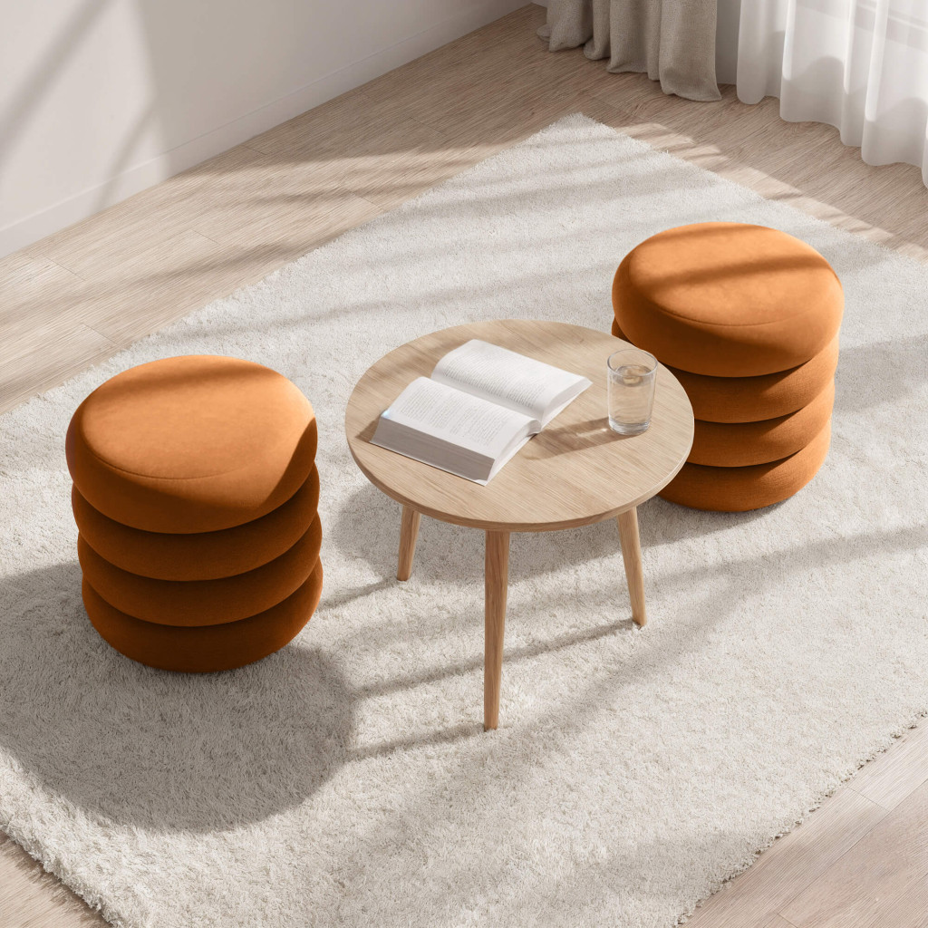 Taburet tapitat Snuggo cu spatiu de depozitare, velur, diametru 42 cm, inaltime 45 cm, portocaliu Household NewTrend