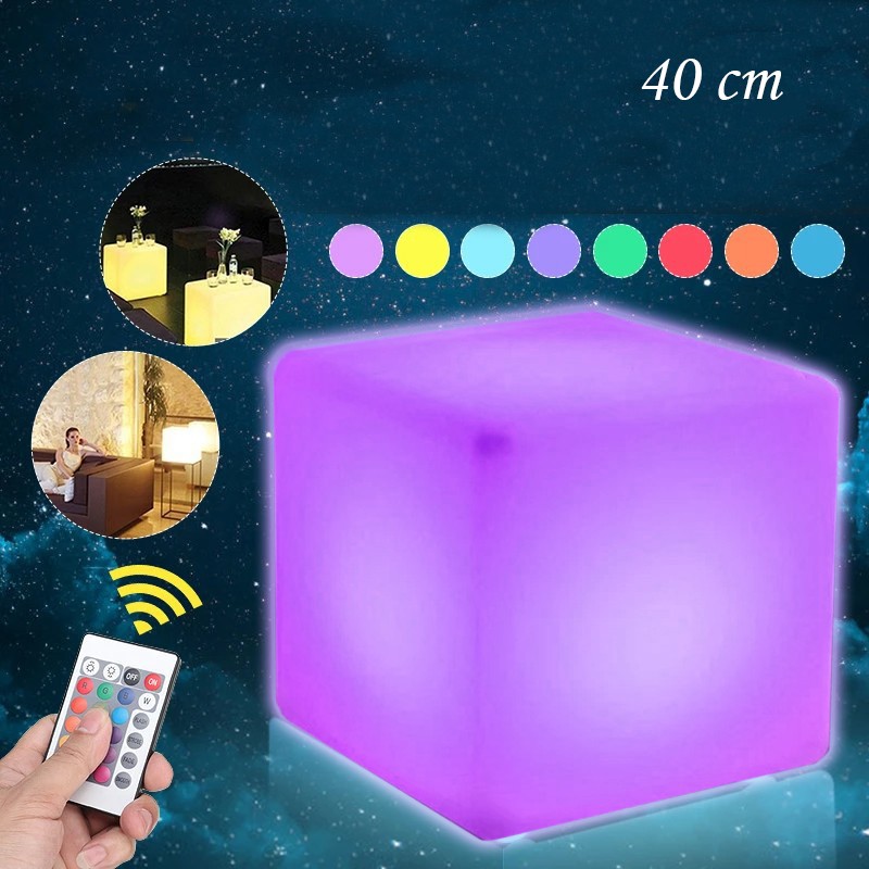 Taburet tip cub iluminat LED, 40x40 cm, 16 culori, 4 moduri, control telecomanda