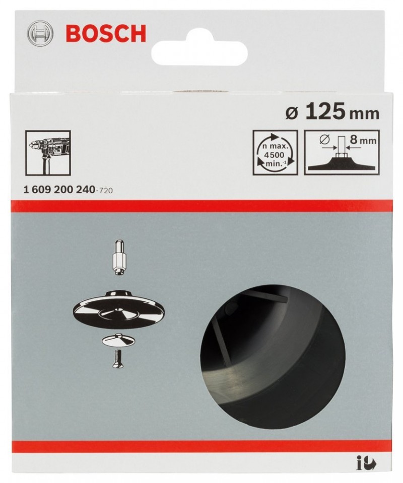 Taler suport Bosch pentru foi abrazive 125 mm, cu tija de fixare 8 mm, pentru GBM