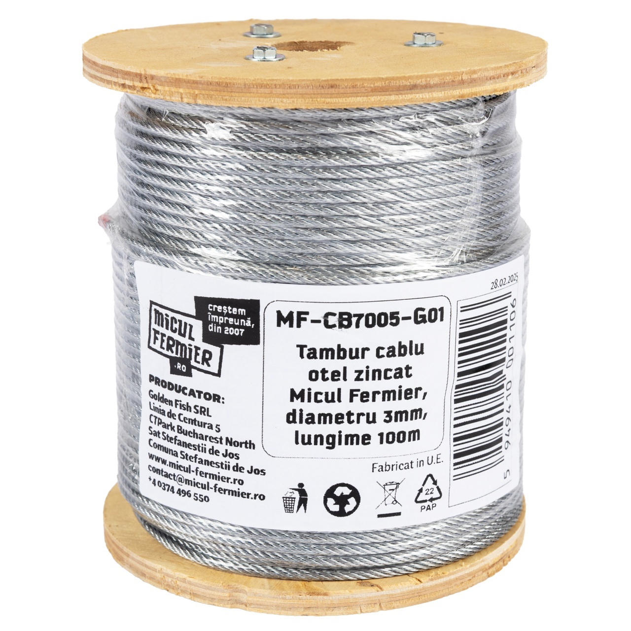 - Tip: cablu oțel zincat pe tambur