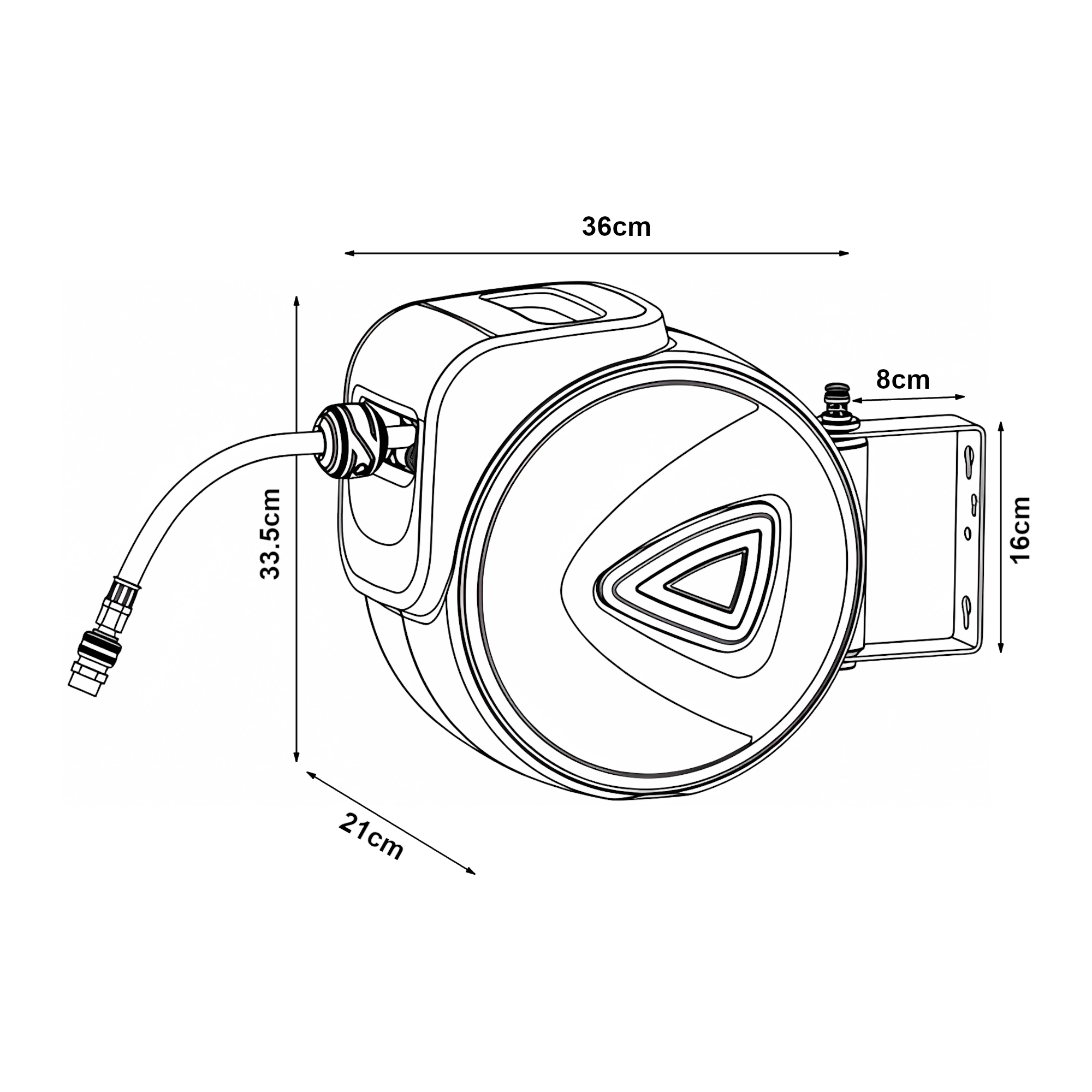 - Dimensiuni carcasa cu suport de perete (L x l x H): 44,5 x 21 x 33,5 cm