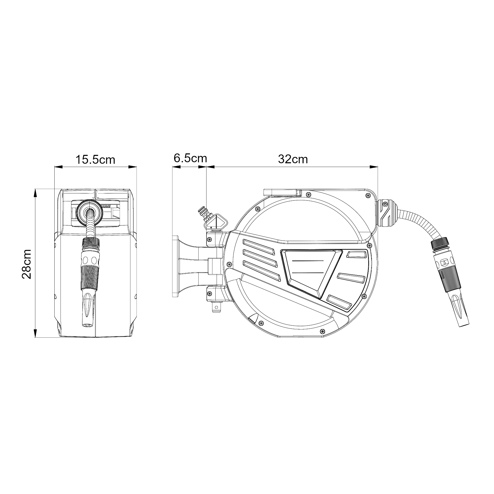 - 1 x tambur cu furtun de apă și conductă de alimentare