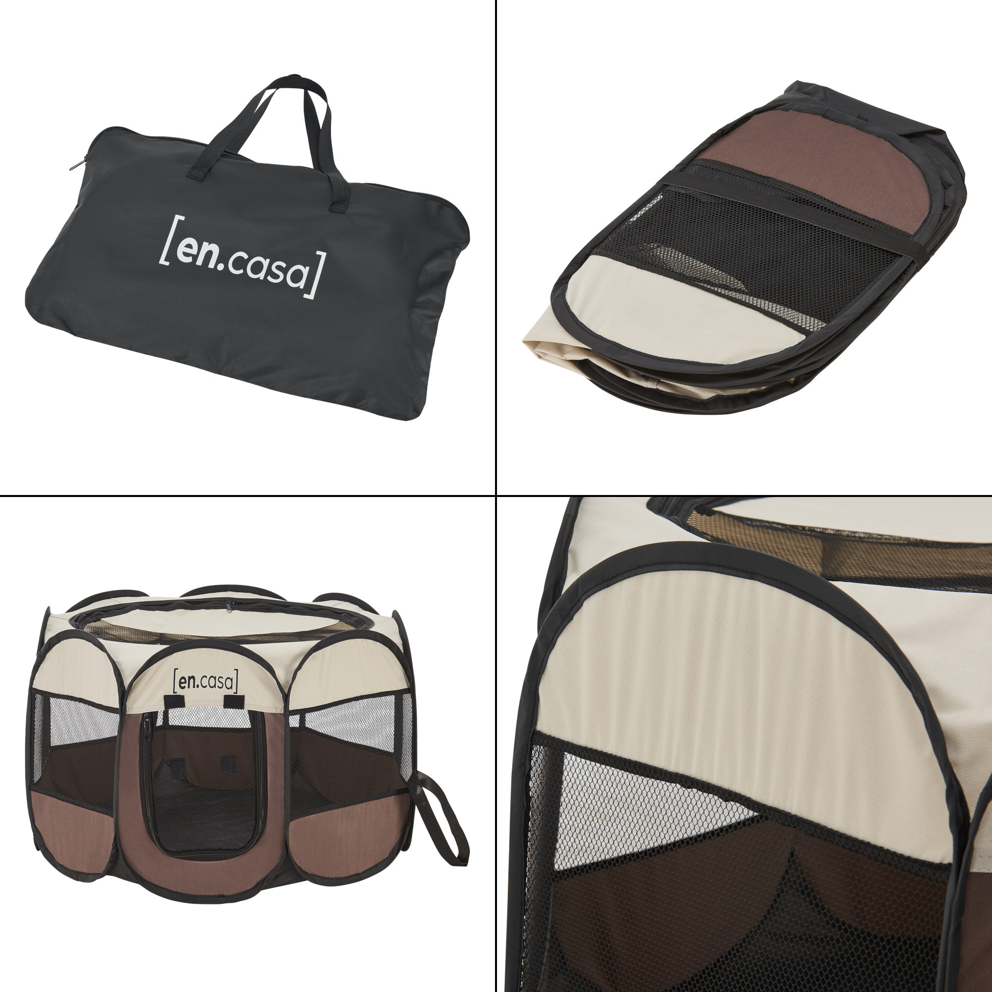 Tarc animale companie Telford 58 x 91 x 91 cm pliabil maro/crem [en.casa] HausGarden Leisure