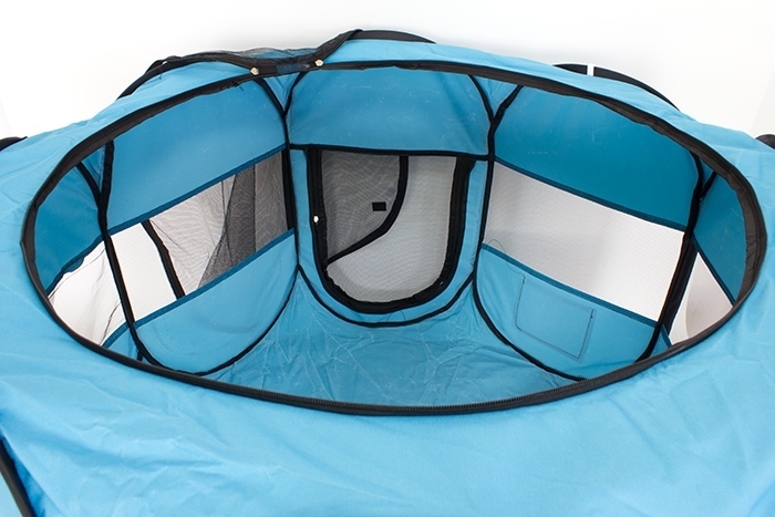 - Echipat cu un acoperiș din plasă detașabil, se pliază și se desfășoară rapid și ocupă puțin spațiu atunci când este pliat.
