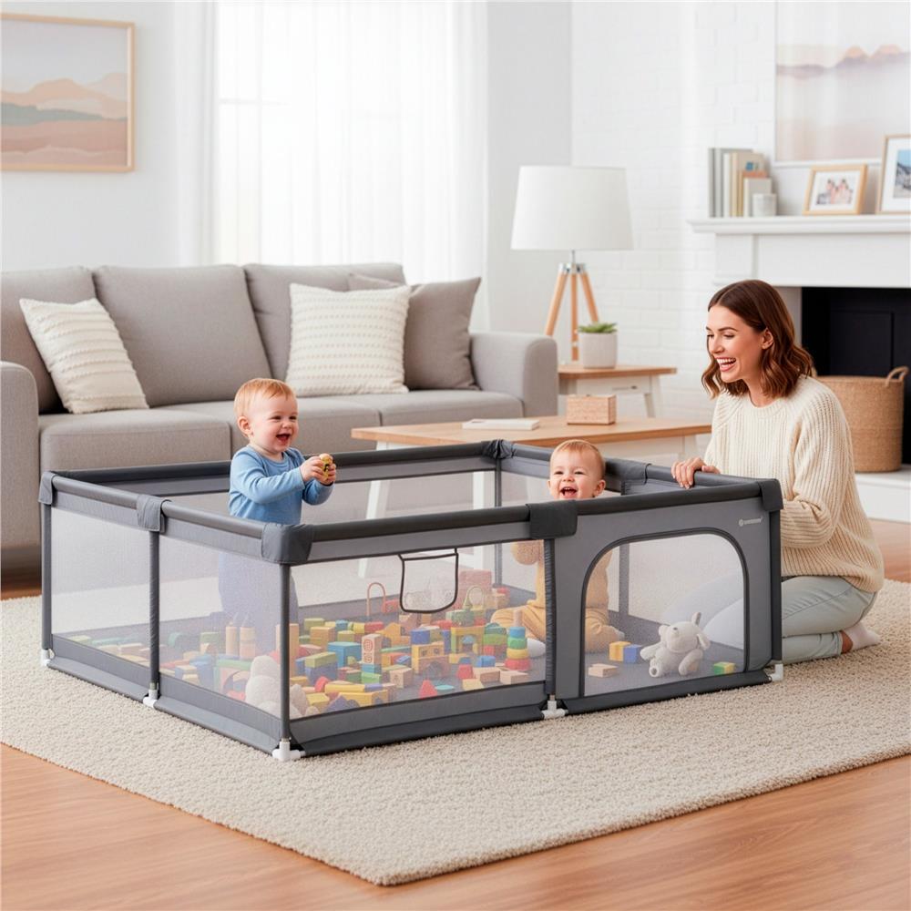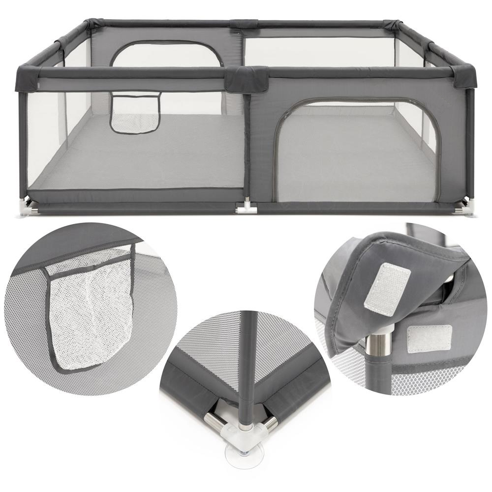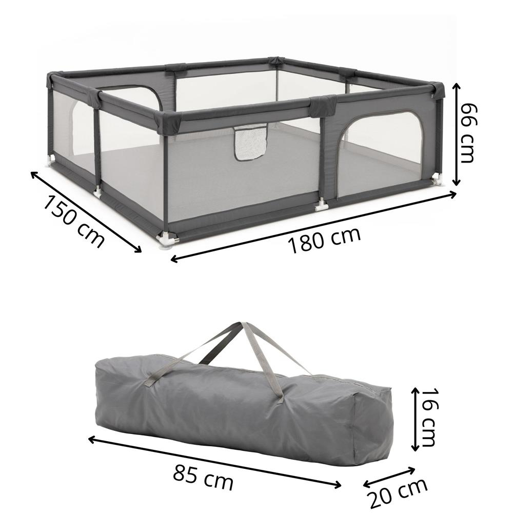 Tarc de joaca pliabil pentru copii, cu intrare cu fermoar, 180x150x66 cm, gri Household NewTrend