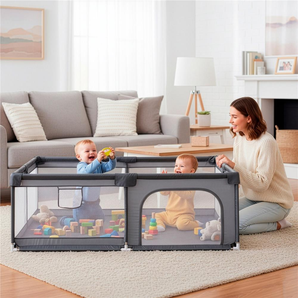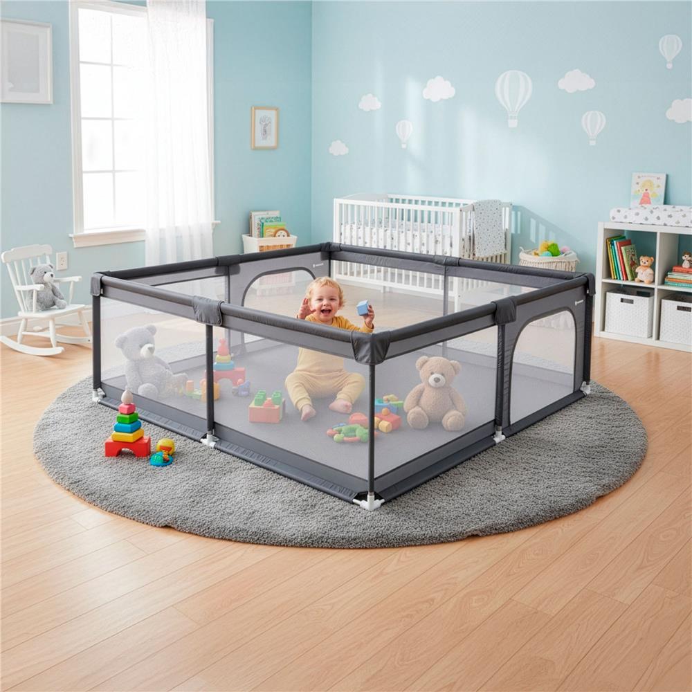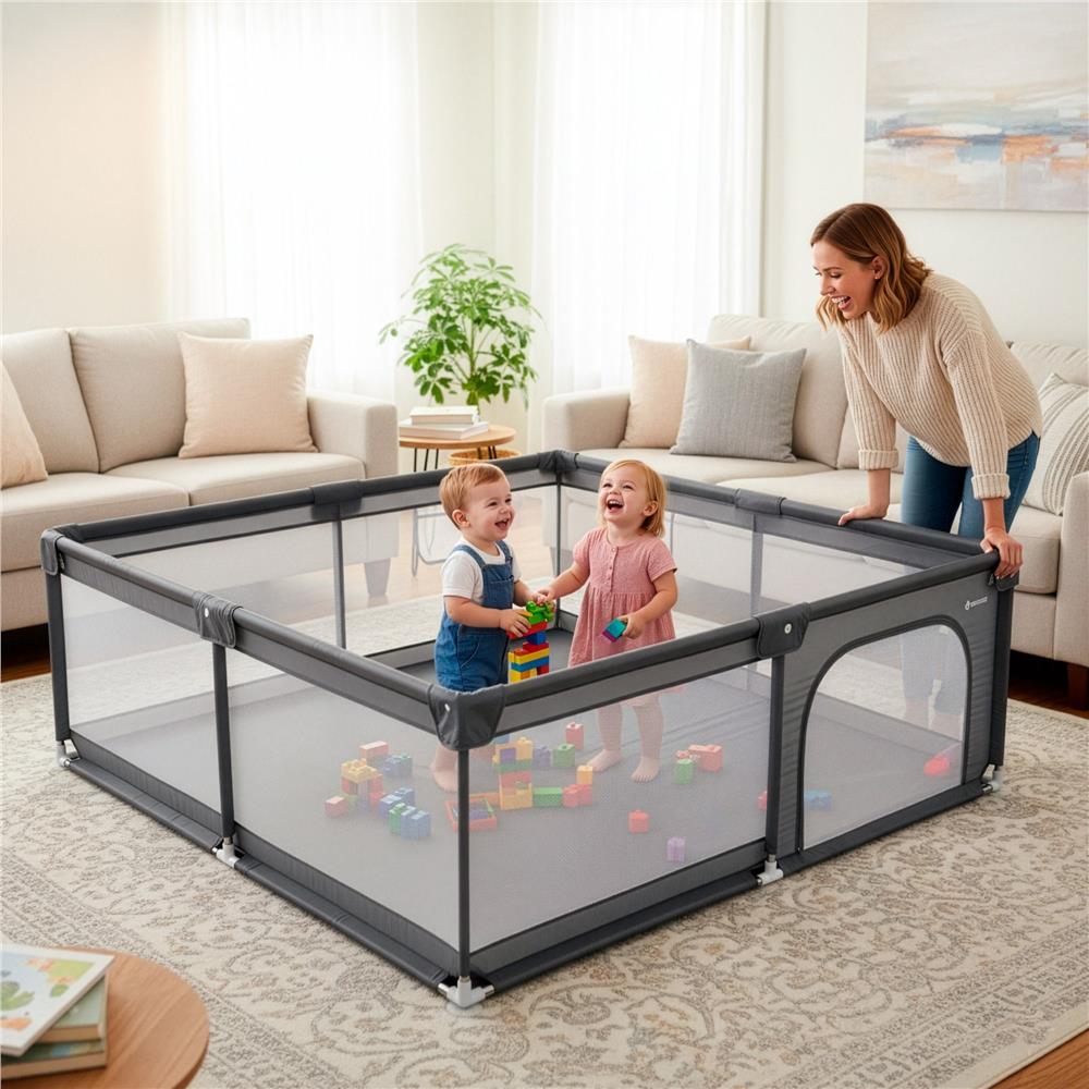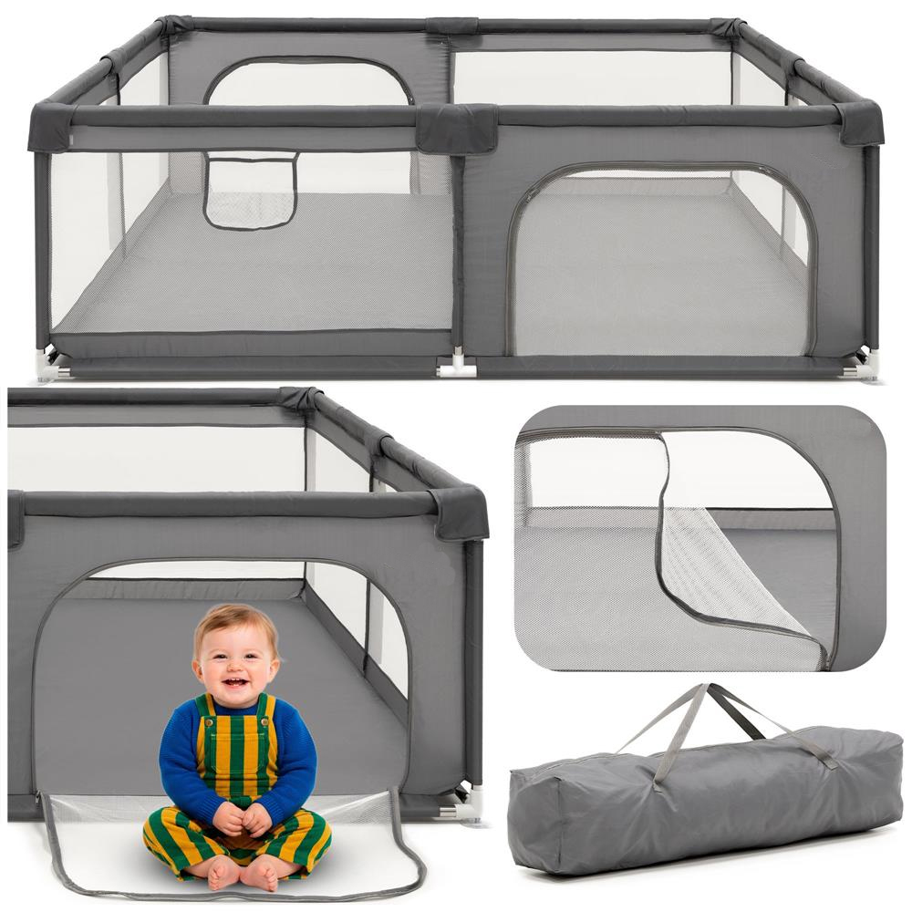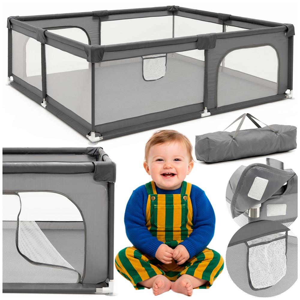 Tarc de joaca pliabil pentru copii, cu intrare cu fermoar, 200x180x66 cm, gri Household NewTrend