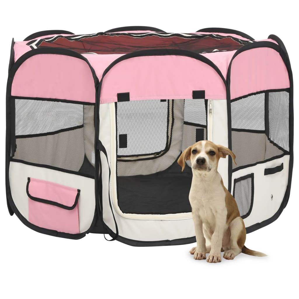Țarc joacă pliabil câini cu sac de transport roz 90x90x58 cm GartenMobel Dekor