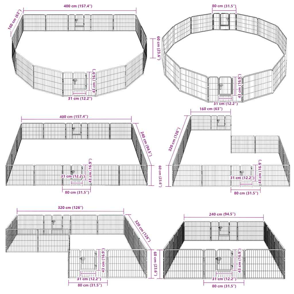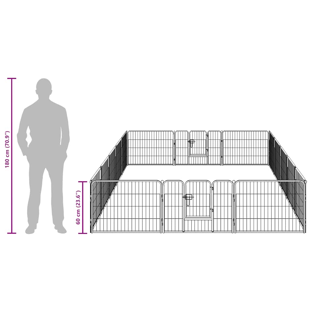 Țarc pentru câini, 16 panouri, oțel, 60 x 80 cm, negru GartenMobel Dekor