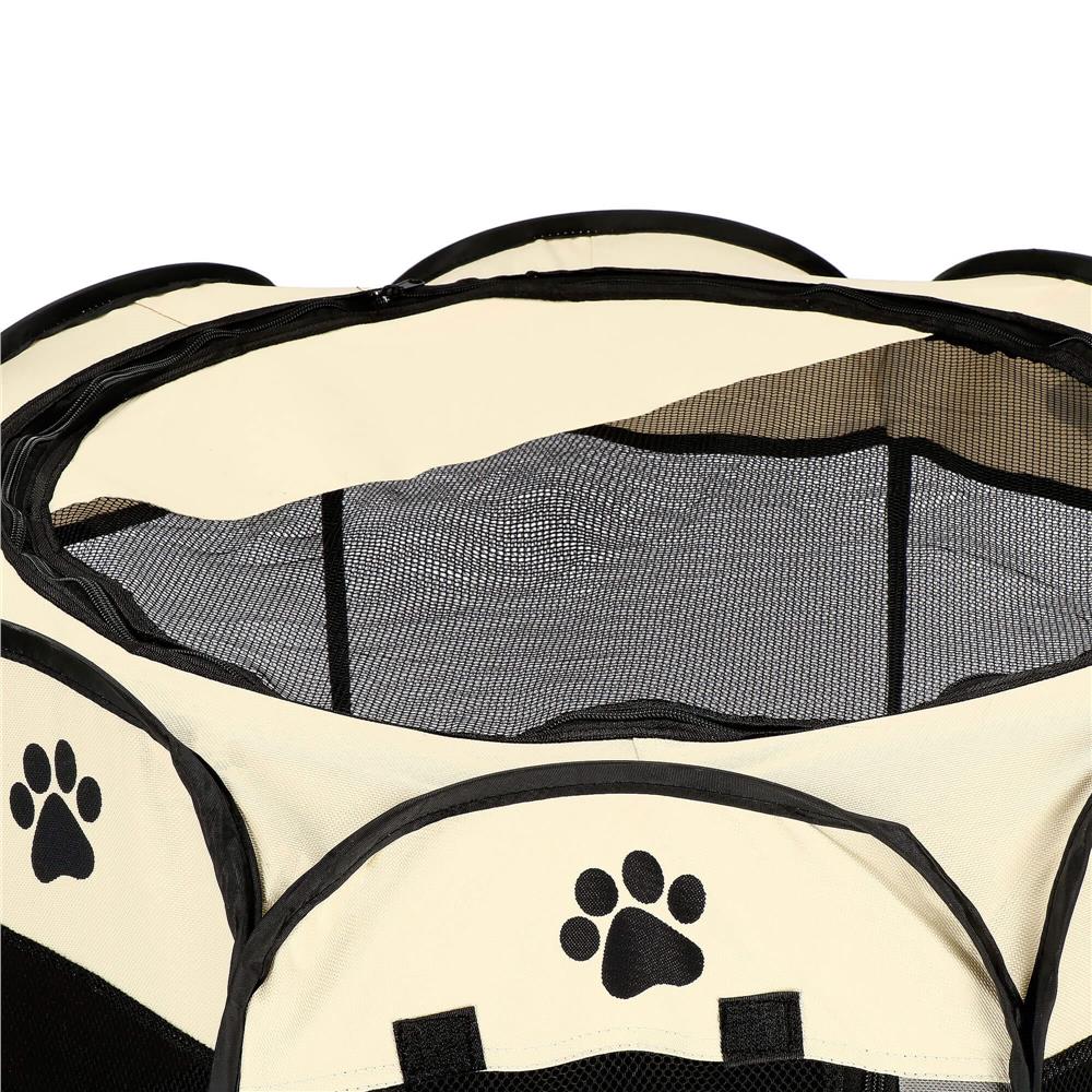 Ofera-i companionului tau un spatiu confortabil si sigur cu acest tarc pliabil pentru animale de companie, potrivit pentru caini de talie mica, catei, pisici si alte animale mici. Designul octogonal, materialul textil rezistent si panourile din plasa asigura o buna ventilatie, vizibilitate excelenta si protectie atat in casa, cat si in exterior. Este alegerea potrivita daca ai nevoie de un tarc textil pentru caini si pisici usor de montat, transportat si depozitat.