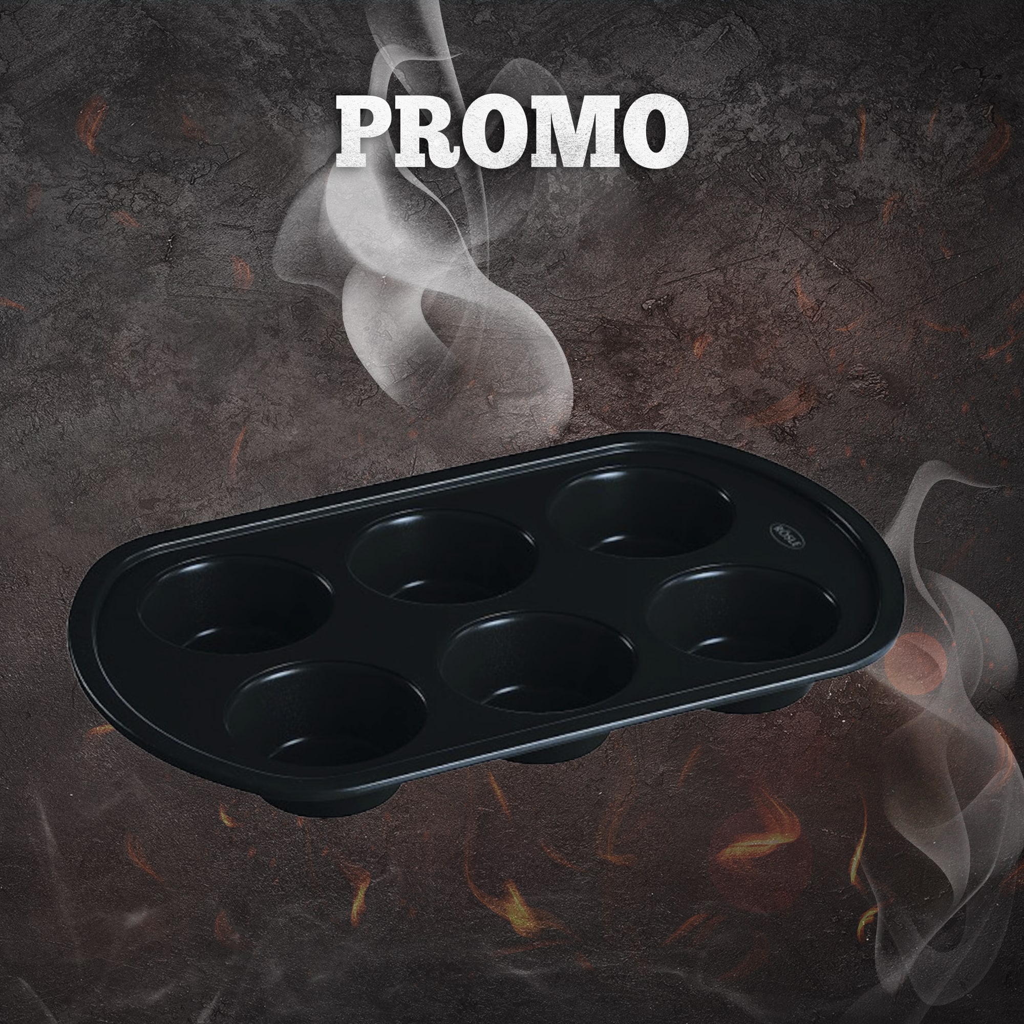 O tavă de copt cu 6 forme pentru brioșe. Diametrul brioșelor este de 7 cm, capacitatea 6 x 80 ml. Se potrivește la toate grătarele RÖSLE Ø 50 cm și 60 cm. Poate fi folosită și în cuptor. Se poate spăla în mașina de spălat vase. Tablă de oțel, complet antiaderentă, rezistentă la căldură până la 400 °C/752 °F. Caracteristici:- Forme pentru brioșe