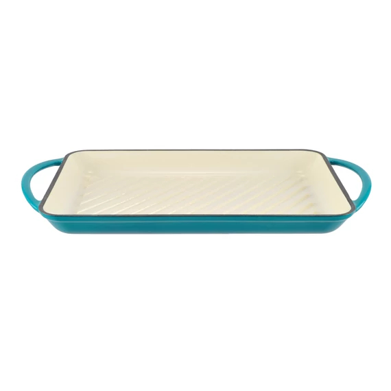 Tavă grill din fontă emailată 33×21,5 cm turcoaz, cu mânere Perfect Home
