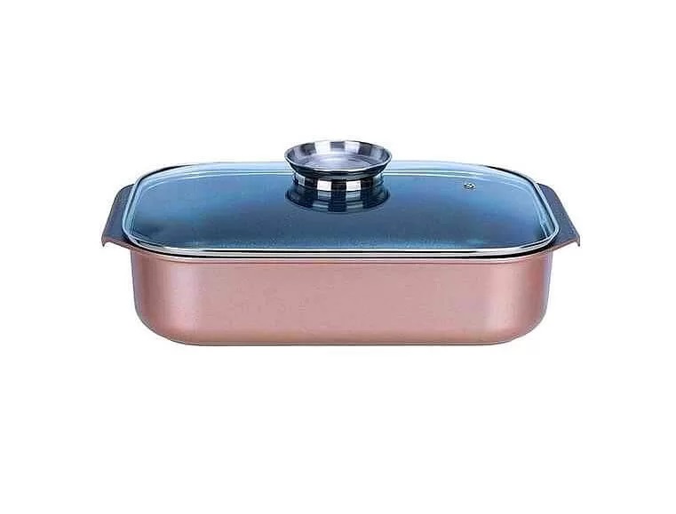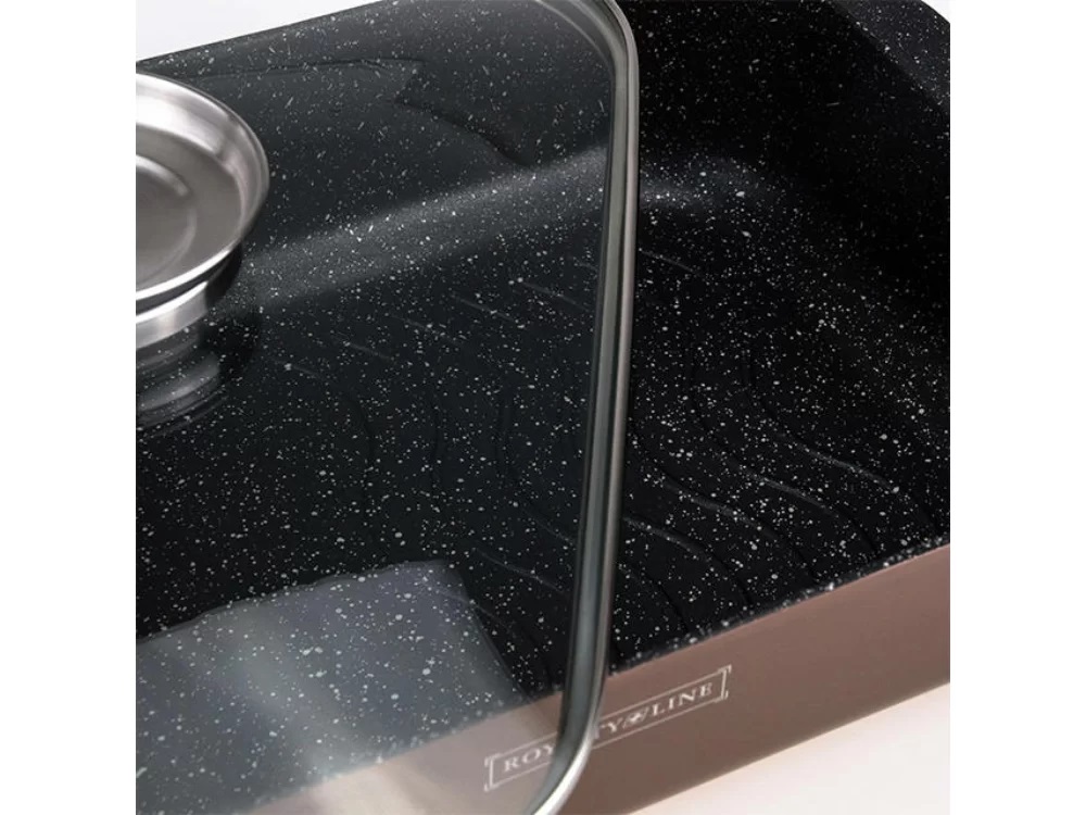 Tavă Royalty Line antiaderentă, cu înveliș de marmură și capac de sticlă, 5.3 L. Handy KitchenServ