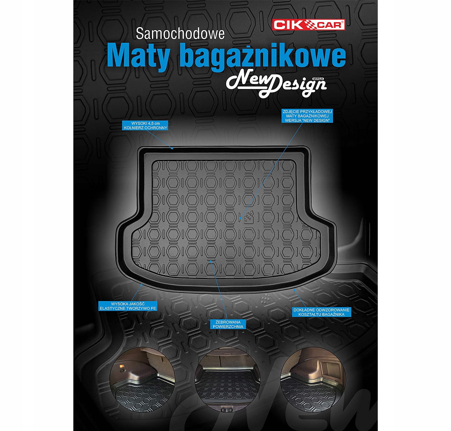 Se așază direct în portbagaj, unde se fixează datorită formei dedicate. Pentru întreținere, tăvița se poate scoate cu ușurință și curăța prin clătire cu jet de apă sau cu soluții de curățare uzuale.