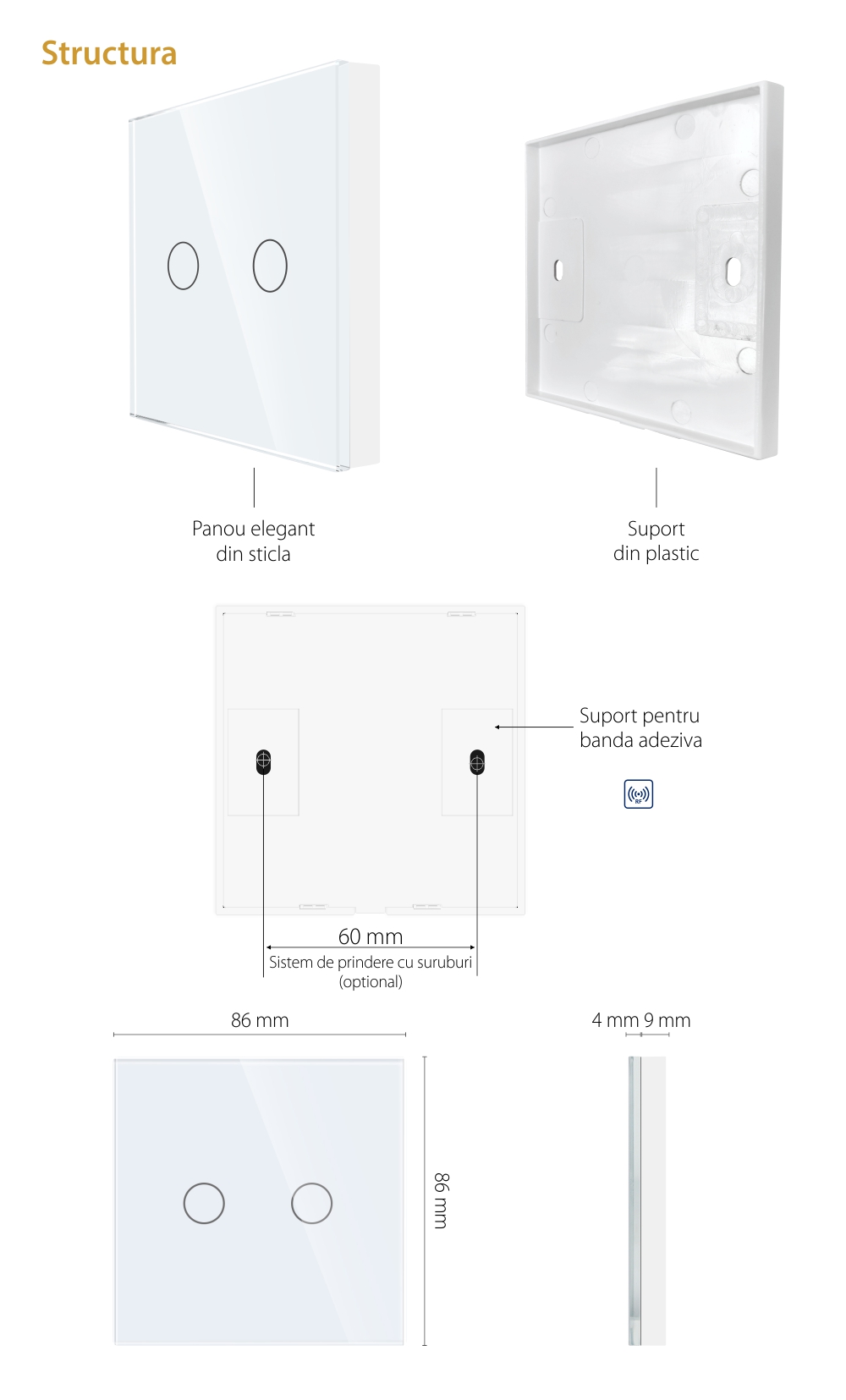 Specificatii Telecomanda Touch Screen 2 Canale RF433