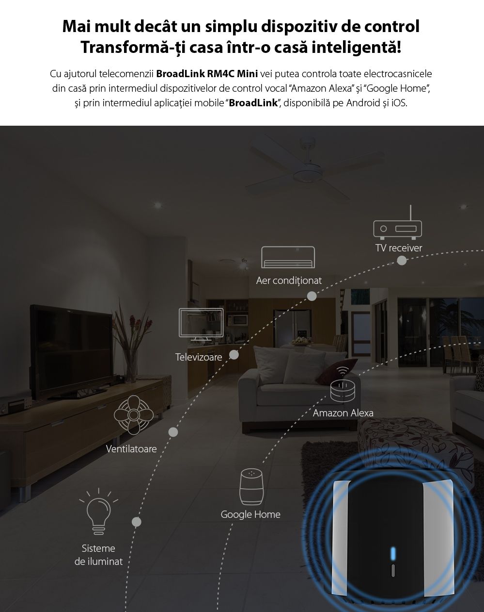 Telecomanda inteligenta BroadLink BestCon RM4C Mini, IR, Wi-Fi, compatibil Amazon Alexa si Google Home SmartElectro IntelligentHouse