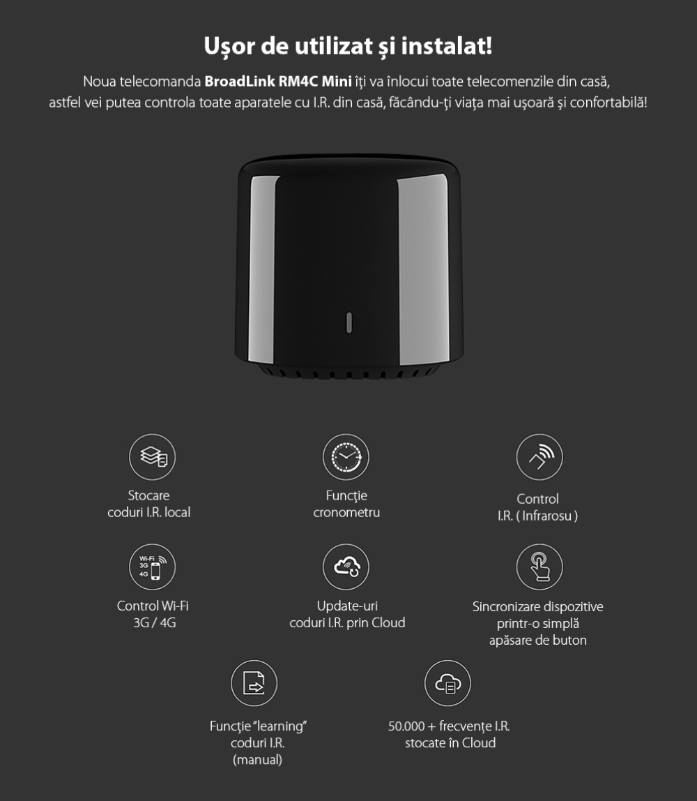 Specificatii Telecomanda inteligenta BroadLink BestCon RM4C Mini,