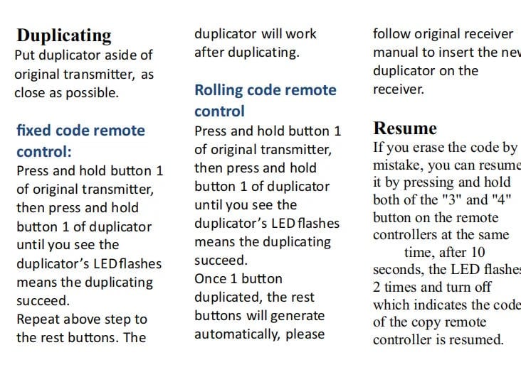 - Suport pentru fixed code / rolling code (în funcție de sistem)