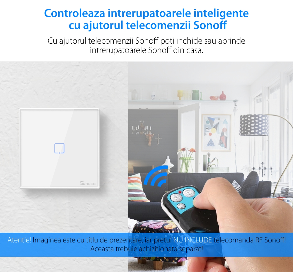 Specificatii Telecomanda Sonoff T2EU1C-RF 1 canal, 433