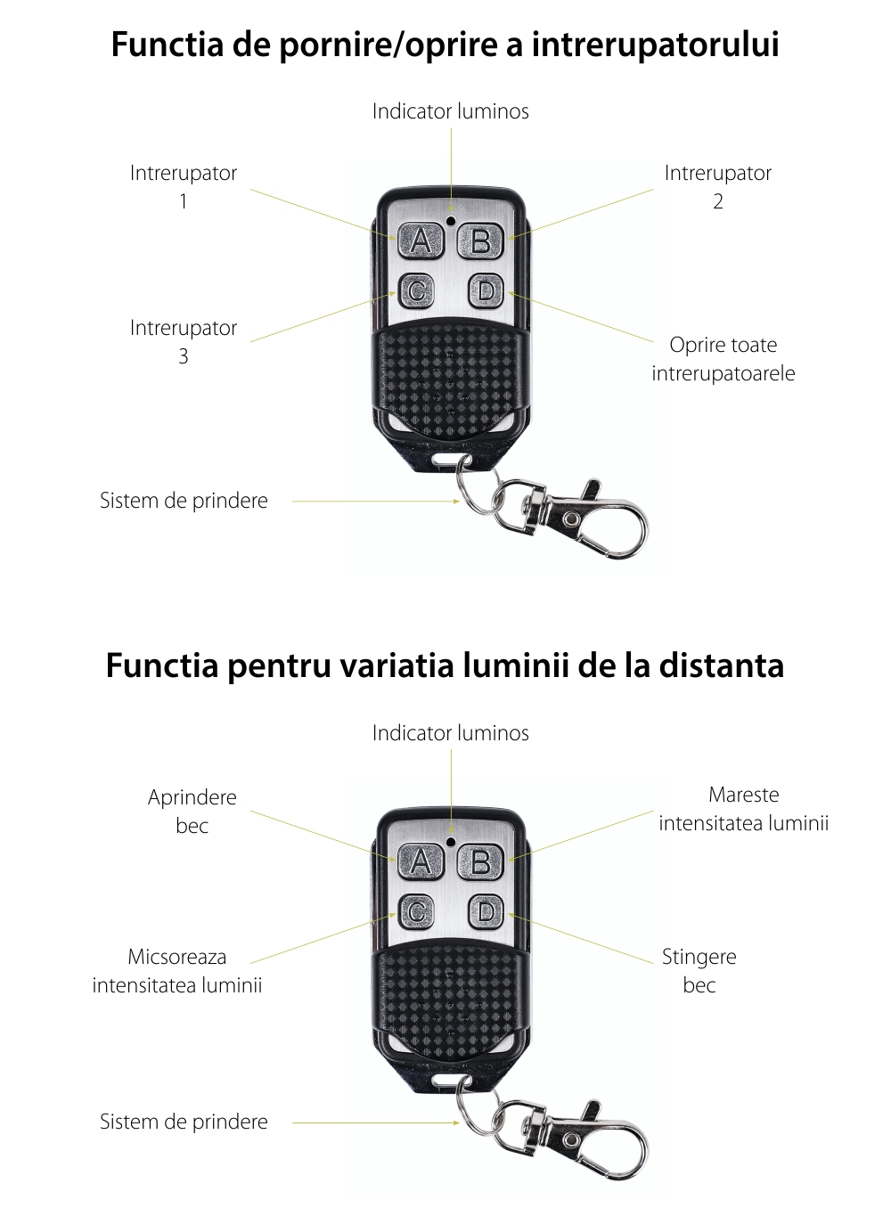Specificatii Telecomanda tip breloc intrerupatoarele variator cap