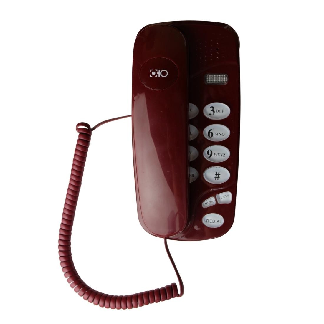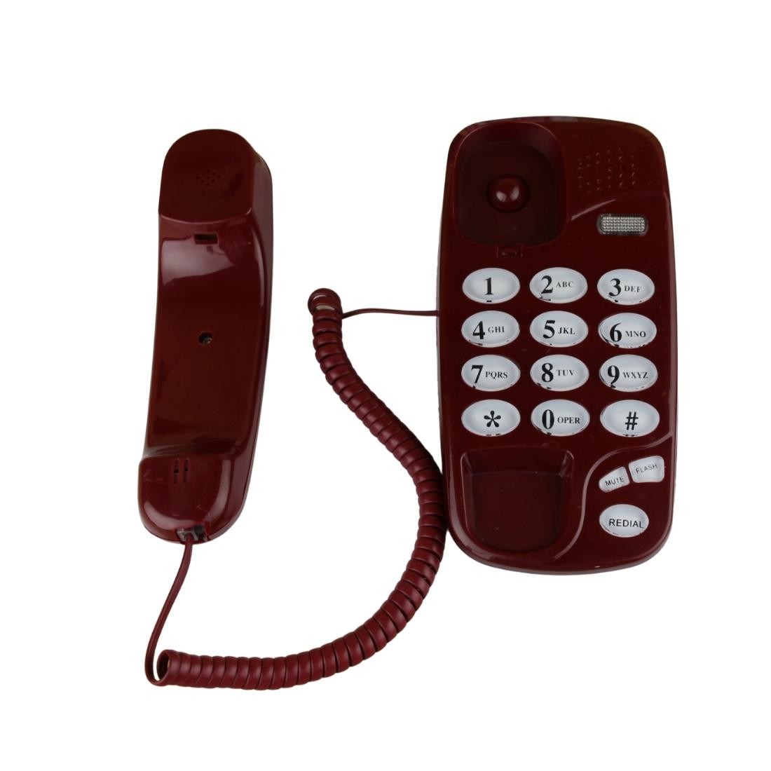 Telefon fix cu fir montabil pe perete, tastatura iluminata, redial, mute, visiniu