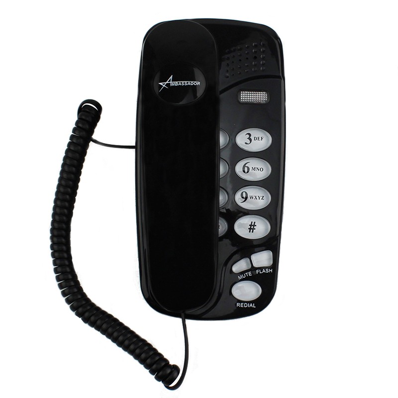 Descriere Telefon fix fir negru, montabil perete,