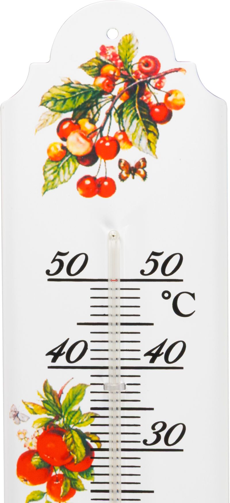 Vonkajší teplomer Strend Pro s ľudovým motívom meria teplotu v rozsahu od 50°C do -30°C. Rozmery: 500x90x15 mm.