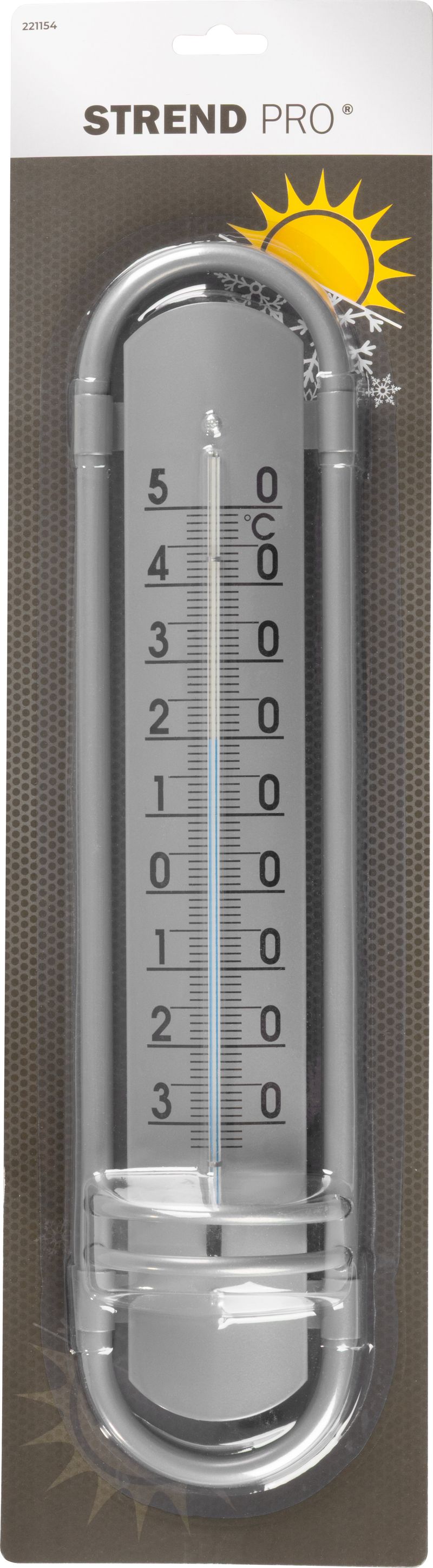 Vonkajší teplomer Strend Pro meria teplotu v rozsahu od 50°C do -30°C. Rozmery: 380x88x35 mm.