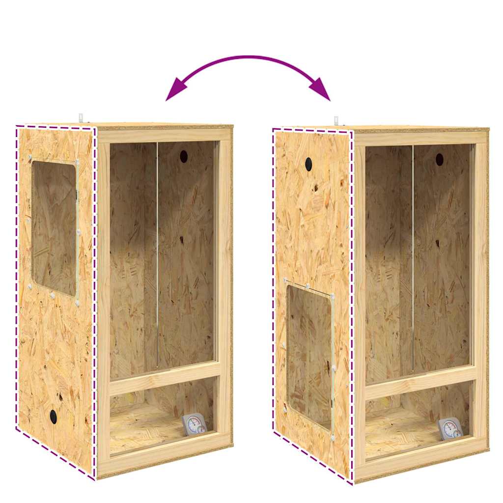 Terrariul OSB e un loc pătrat perfect pentru reptile și amfibieni, combinând funcționalitatea cu un aspect rustic. E făcut din plăci OSB și sticlă rezistentă, oferind vizibilitate și siguranță, așa că e ideal pentru reptilele din interior.