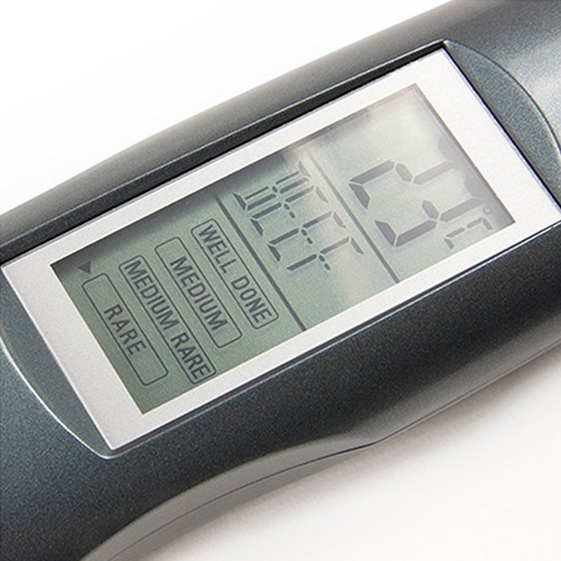 Obtine de fiecare data fripturi suculente si bine gatite cu acest termometru digital pentru carne, ideal pentru cuptor, tigaie sau gratar. Sonda tip furculita are functie dubla: masoara temperatura si te ajuta sa intorci carnea, iar afisajul LED/LCD iti arata rapid informatiile esentiale.