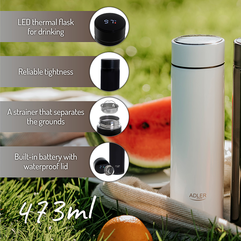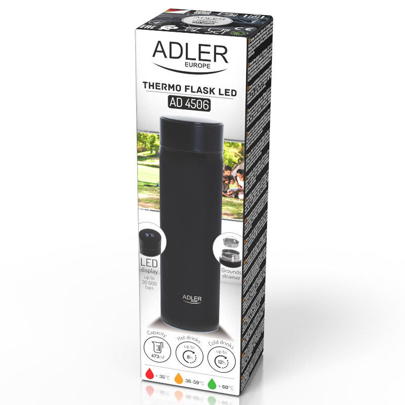 Descriere TERMOS CU AFISAJ TEMPERATURA NEGRU ADLER