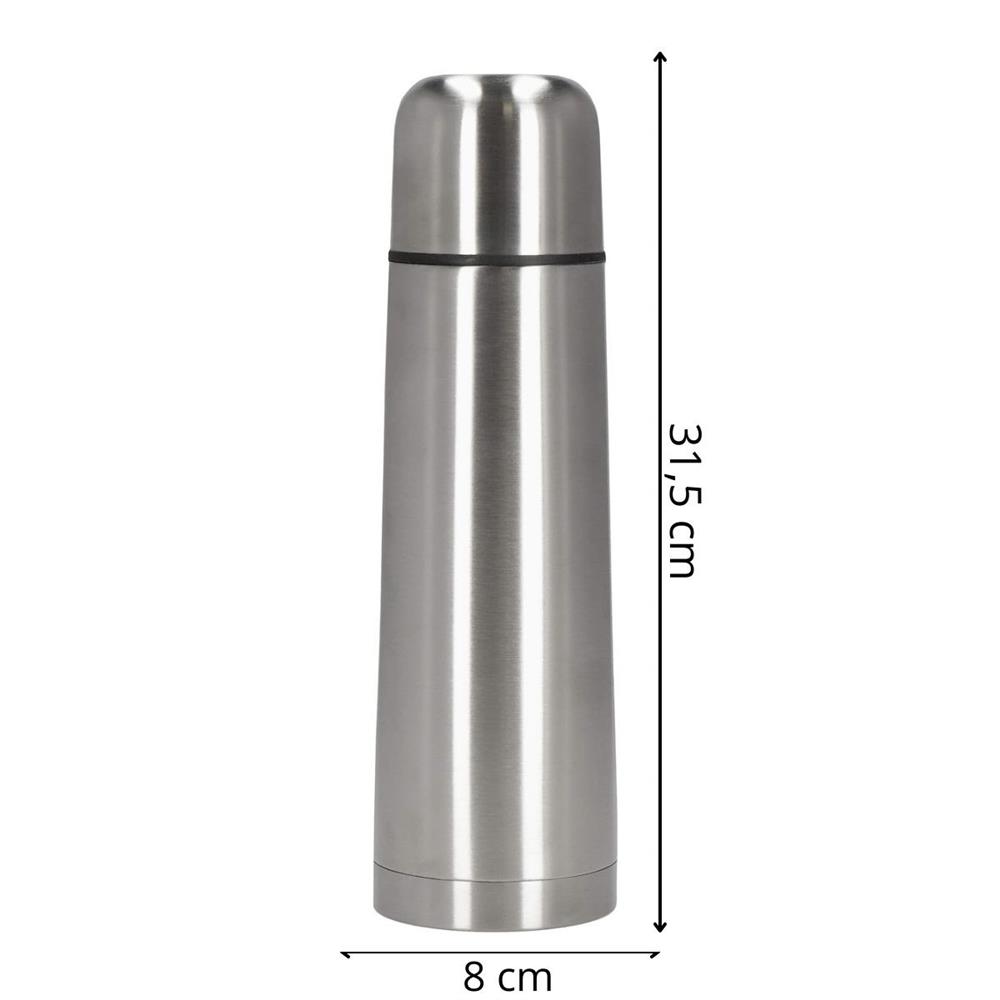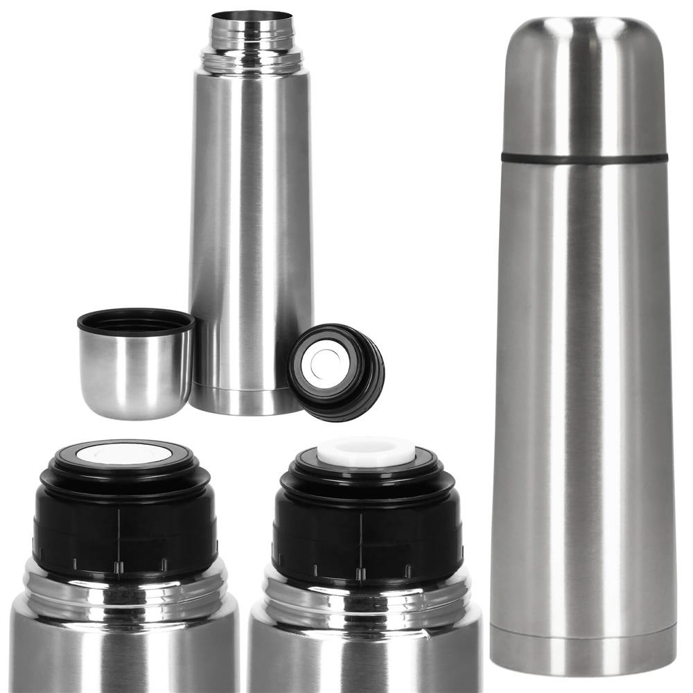 Termos din inox 1L cu pahar, perete dublu izolat, argintiu