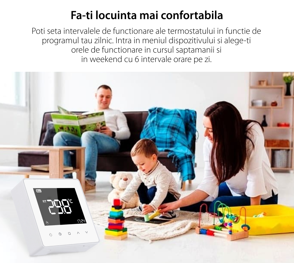 Termostat cu fir Luxion TP618 pentru centrala termica pe gaz sau electrica, Display LCD, Memorare SmartElectro IntelligentHouse
