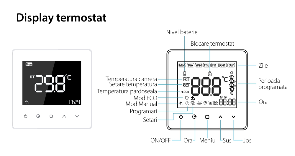 Specificatii Termostat fir Luxion TP618 centrala termica