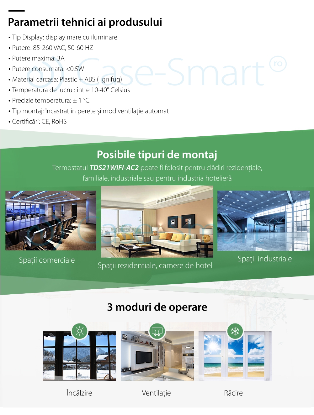 Specificatii Termostat fir aer conditionat BeOk TDS21WIFI-AC2,