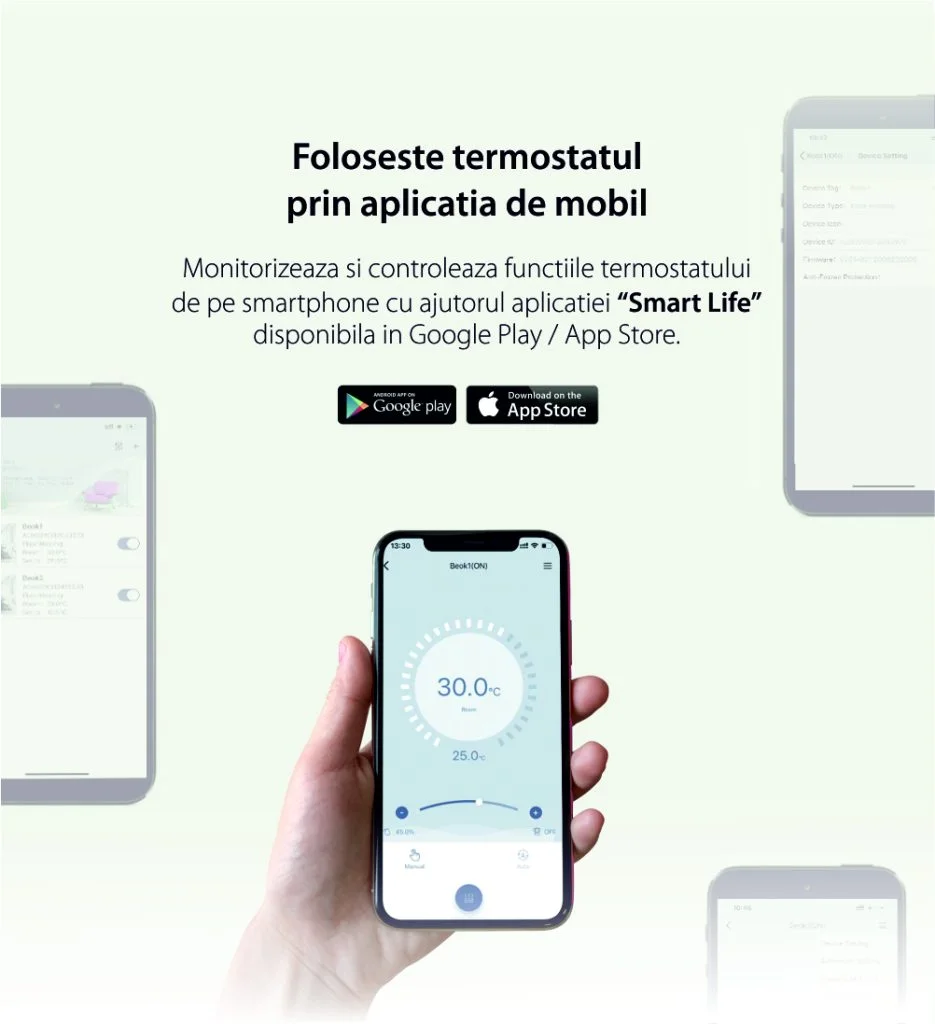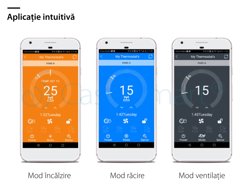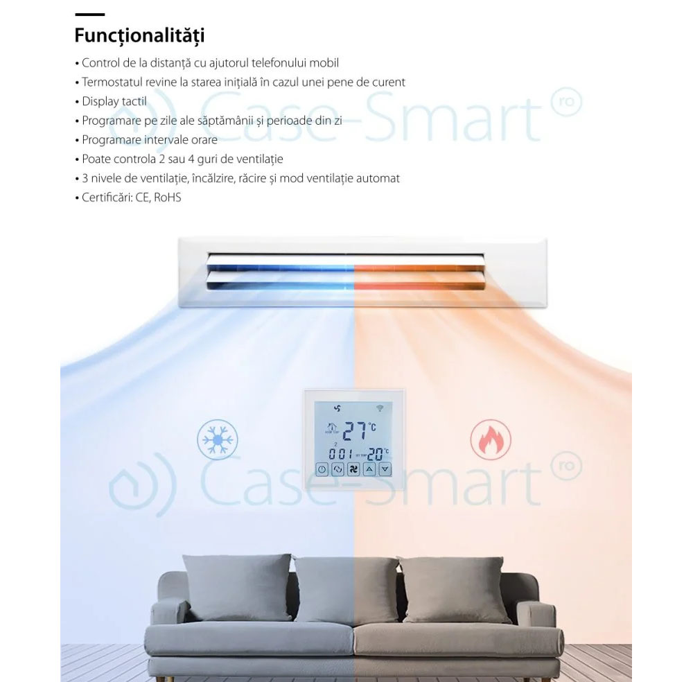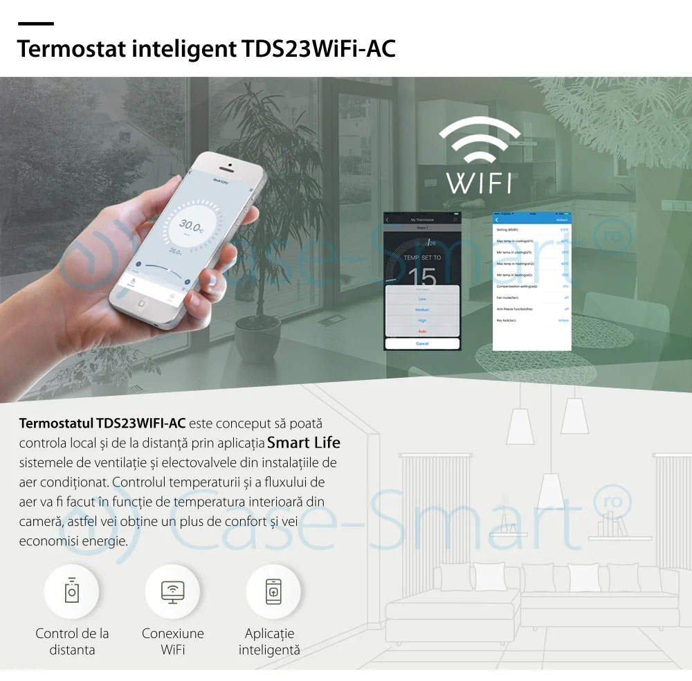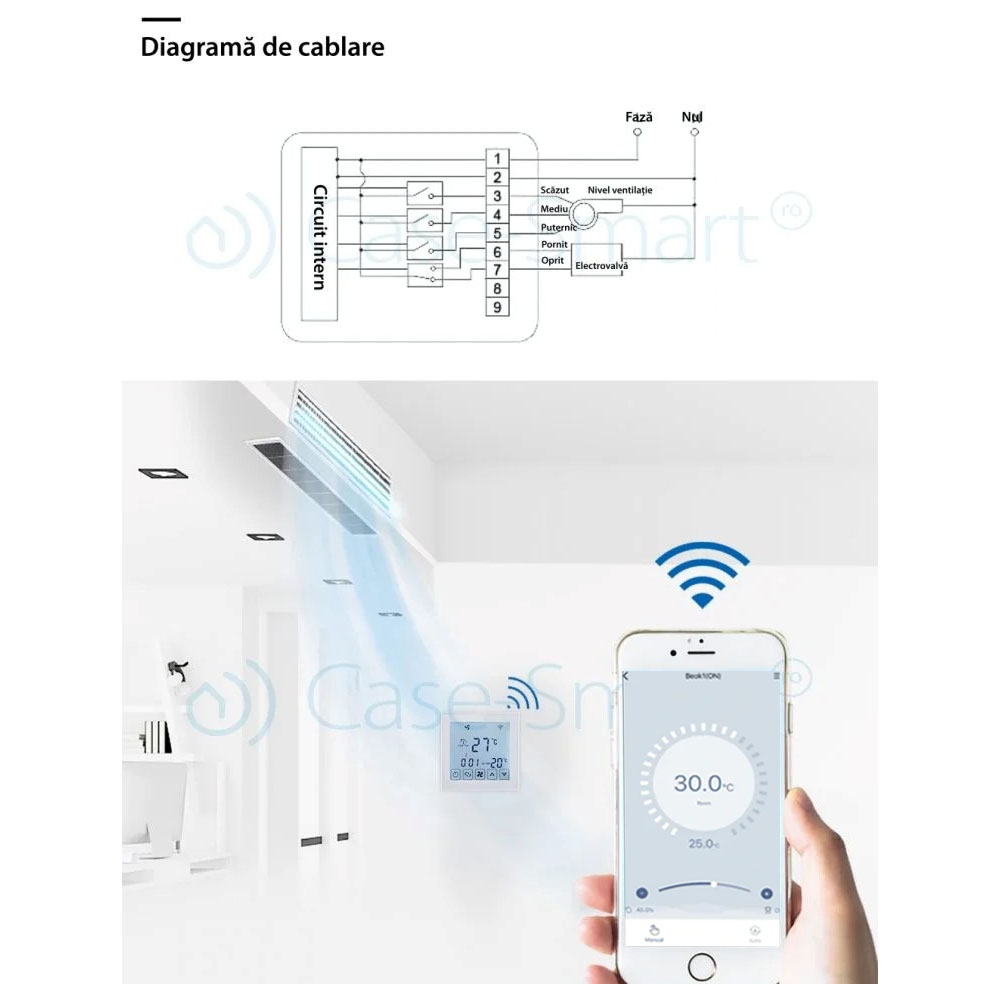 Termostat cu fir pentru aer conditionat BeOk TDS23WiFi-AC, Aplicatia mobila Smart Life, Compatibil cu sisteme HVAC SmartElectro IntelligentHouse