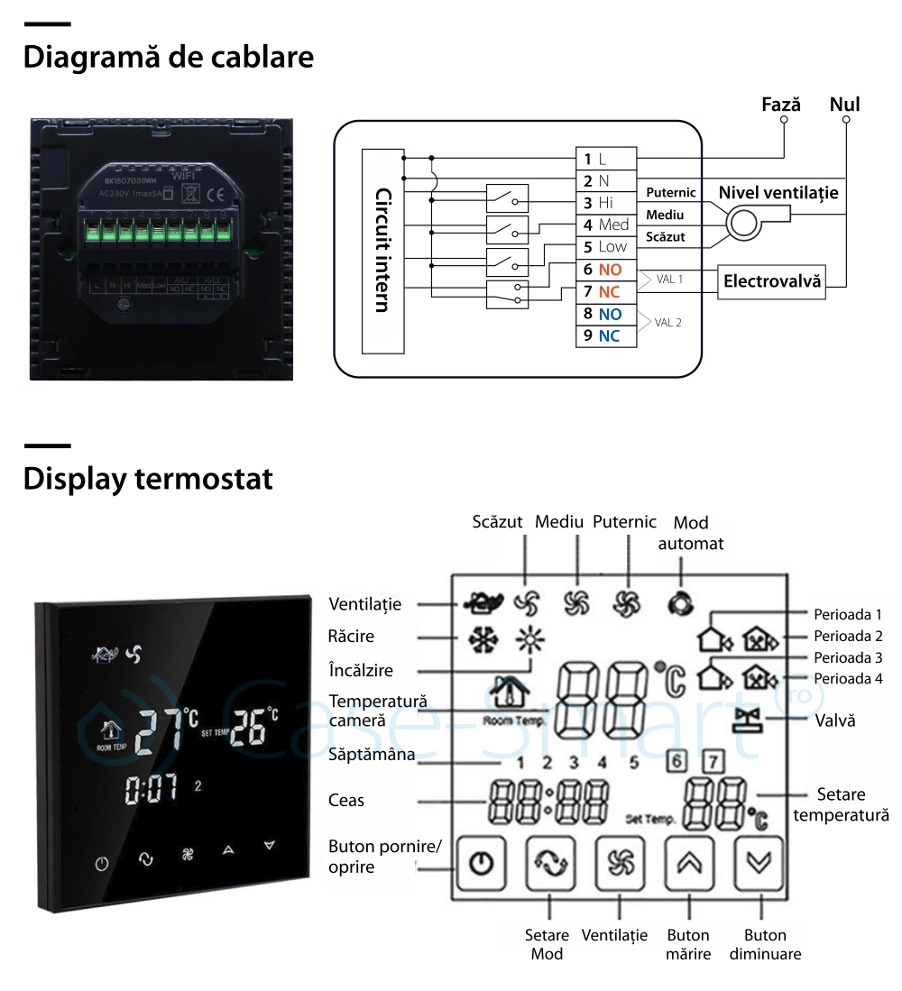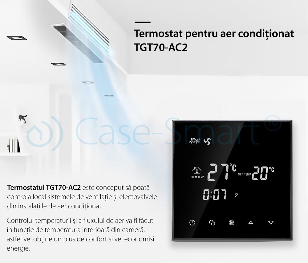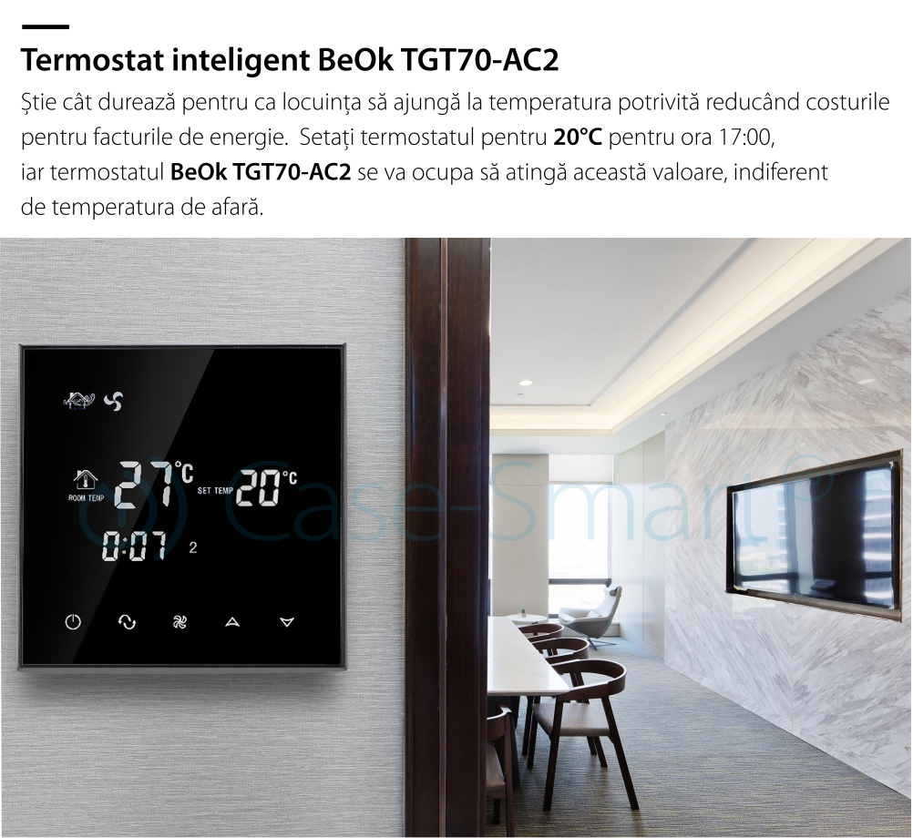 Termostat cu fir pentru aer conditionat BeOk TGT70-AC2, Compatibil cu sisteme HVAC SmartElectro IntelligentHouse