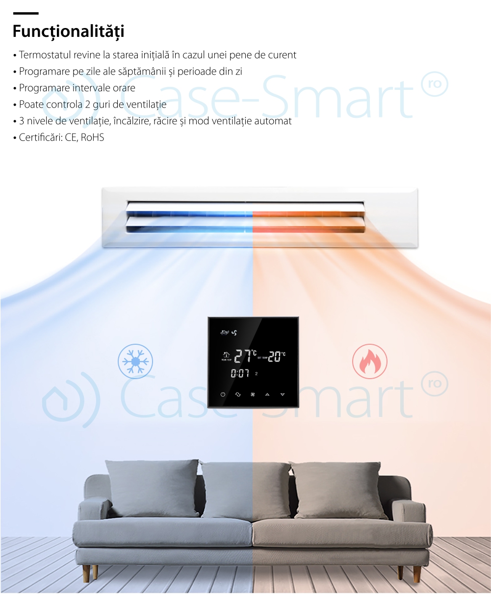 Specificatii Termostat fir aer conditionat BeOk TGT70-AC2,