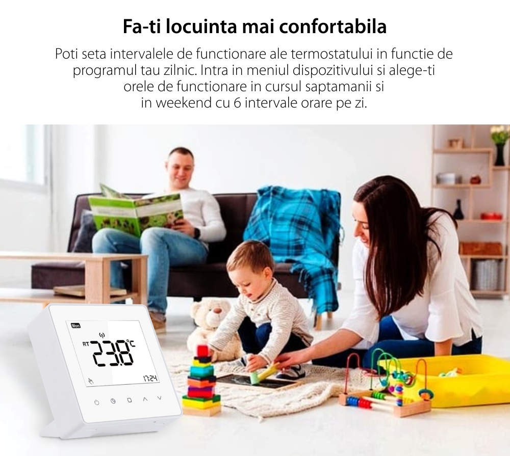 Termostat Luxion TP608RF cu receiver pentru centrala termica pe gaz sau electrica, Programari, Anti-inghet SmartElectro IntelligentHouse