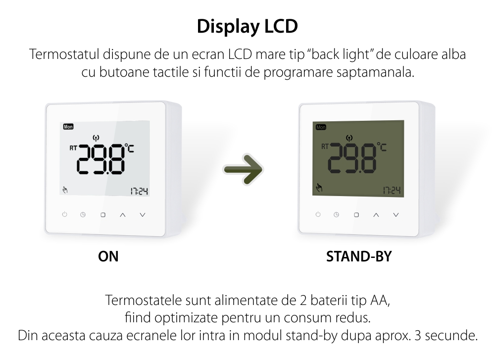 Specificatii Termostat Luxion TP608RF receiver centrala termica