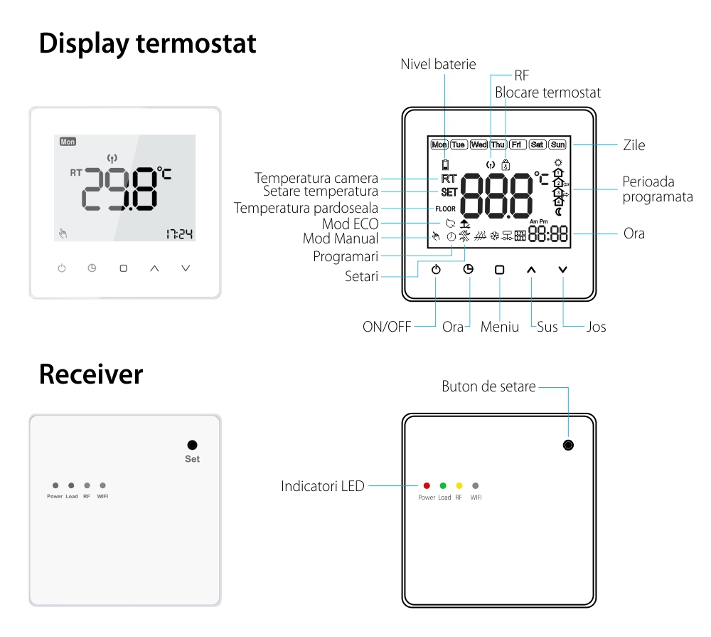 Descriere Termostat Luxion TP608RF receiver centrala termica