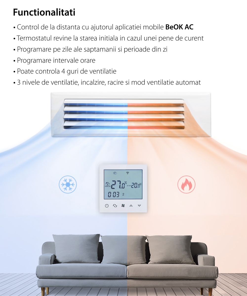 Specificatii Termostat aer conditionat Beok TDS21WIFI-AC4, Programare,