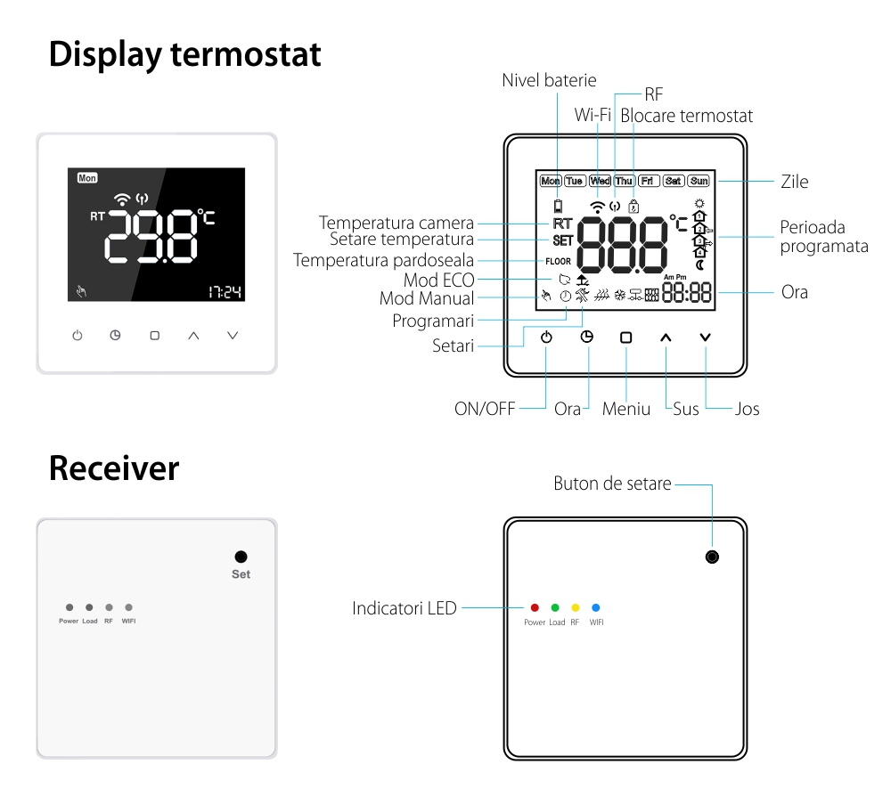 Descriere Termostat Wi-Fi Luxion TP618RFW receiver centrala